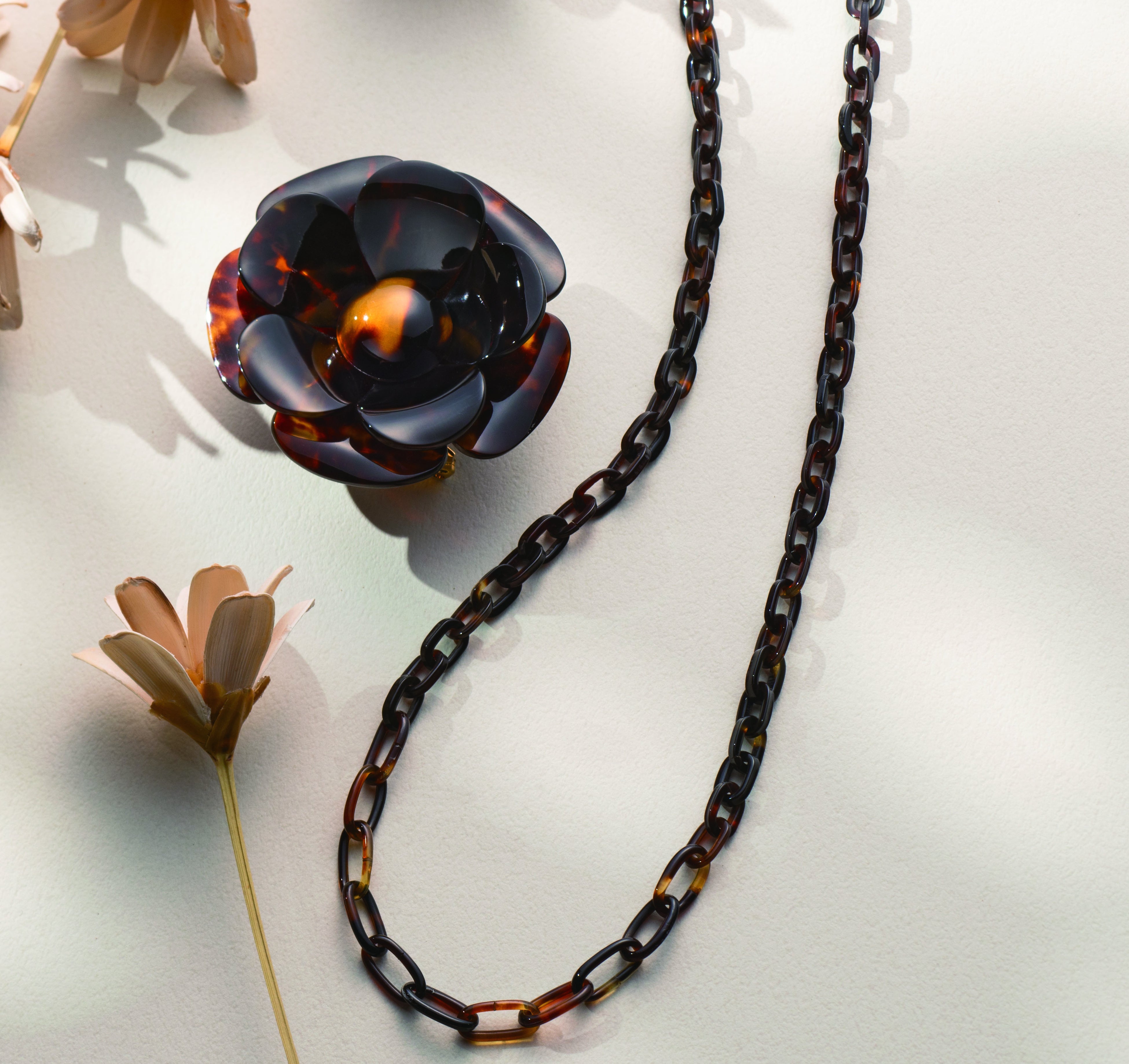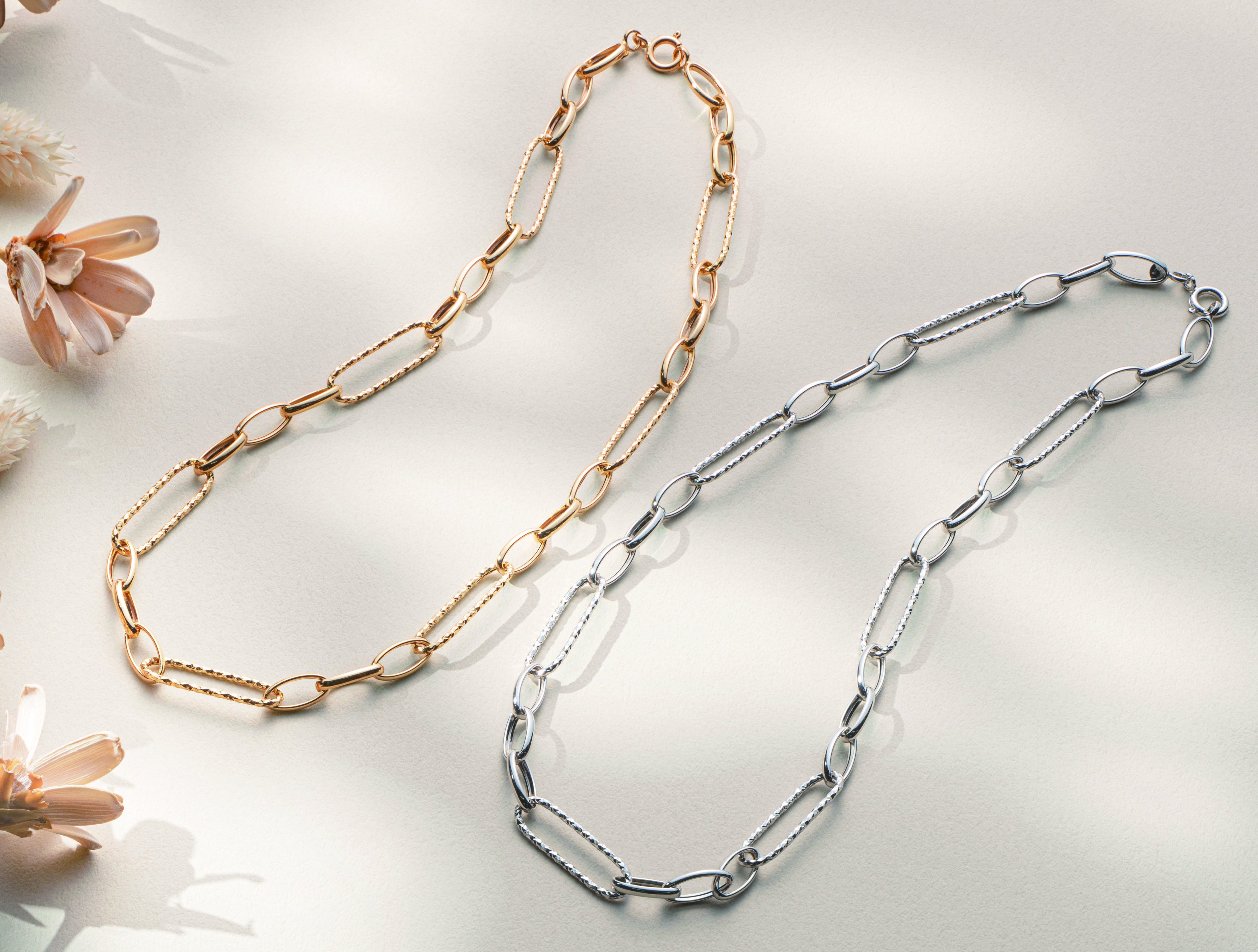 ネックレスを紹介、ブランド初のイエローゴールドとホワイトゴールドの2種類が登場します。