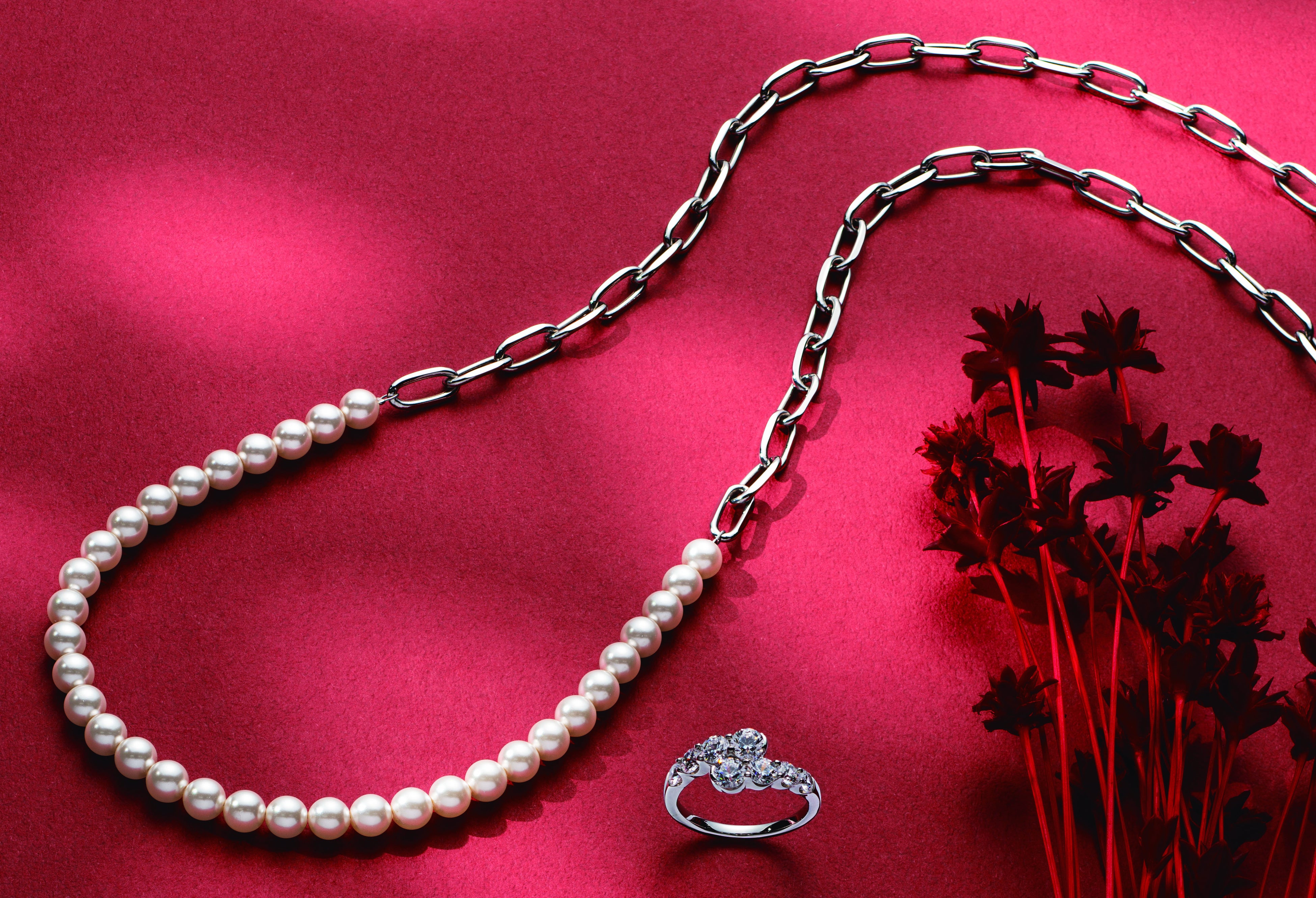 「秋コーデを素敵に格上げ」をコンセプトに、秋の装いに品よく寄り添うジュエリー商品を多数紹介します。