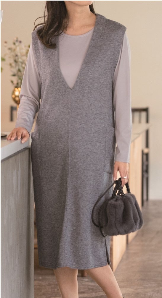ジャンスカとプルオーバーのセットを紹介します。トレンドの深いVネックが特徴のジャンスカとシンプルな