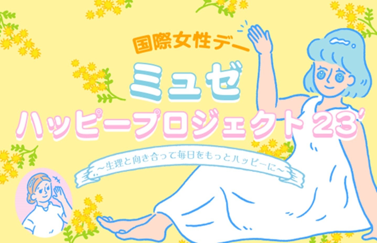 そこで今回は、女性の社会活躍やジェンダー平等を考える3月8日の国際女性デーにあわせて、多くの女性が悩む健康課題のひとつ「生理」をテーマに、正しい知識を学びながら自分自身のからだと向き合うきっかけを提供するオンラインヘルスケアイベント「ミュゼハッピープロジェクト23‘ ~生理と向き合って毎日をハッピーに~」を3月1日より開催いたします。