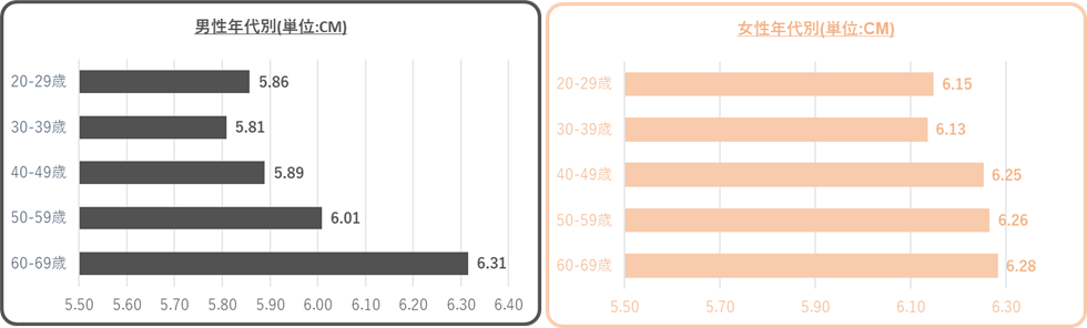 男女の年代別境界線平均値では、男性20代5.86cm、60代は6.31cmと年代が高くなるごとに境界線も広くなり、20代と60代を比較すると約+0.5cmの差が生じています。一方、女性は20代から60代までほぼ変化はありません。男性は、薄毛について厳しい傾向ではありますが、年齢を重ねるに連れて寛容になっていることがわかりました。AGAなどの影響で、加齢するごとに薄毛が進行する可能性が高くなることもあり、薄毛に悩んでいる方の人数が多くなる為、寛容になっているのではないかと考えられます。