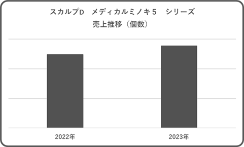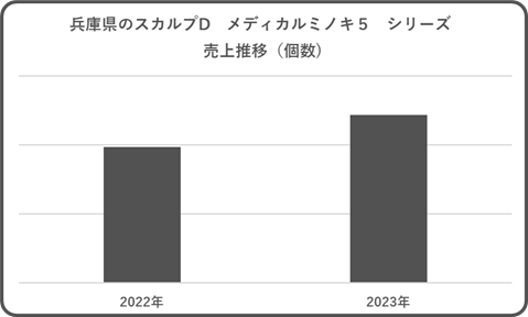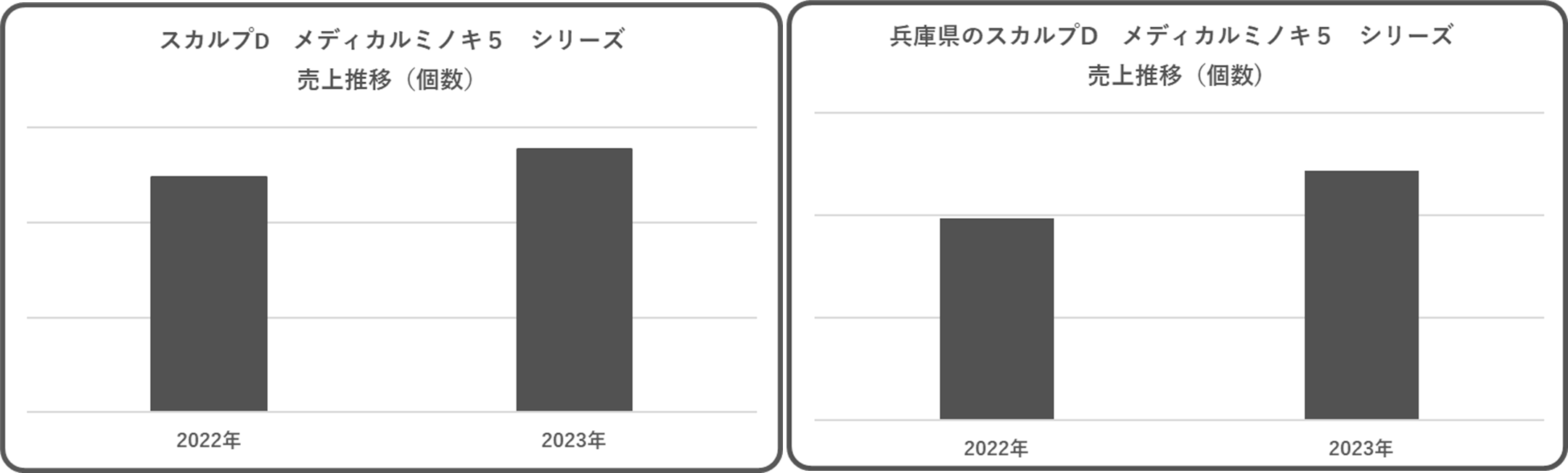 2022年から2023年の期間※2でスカルプD メディカルミノキ5シリーズの売上を比較したところ、112%で推移しております。同様に最も薄毛に厳しい兵庫県で昨年との売上を比較したところ、124%で推移していることがわかりました。兵庫県は全国で1番「投薬や医薬品を使用している」と回答する人多かったこともあり、発毛剤へのニーズが高まり、スカルプD メディカルミノキ5シリーズの売上が好調に推移していると考えられます。兵庫県の今後の動向に注目していきたいと思います。