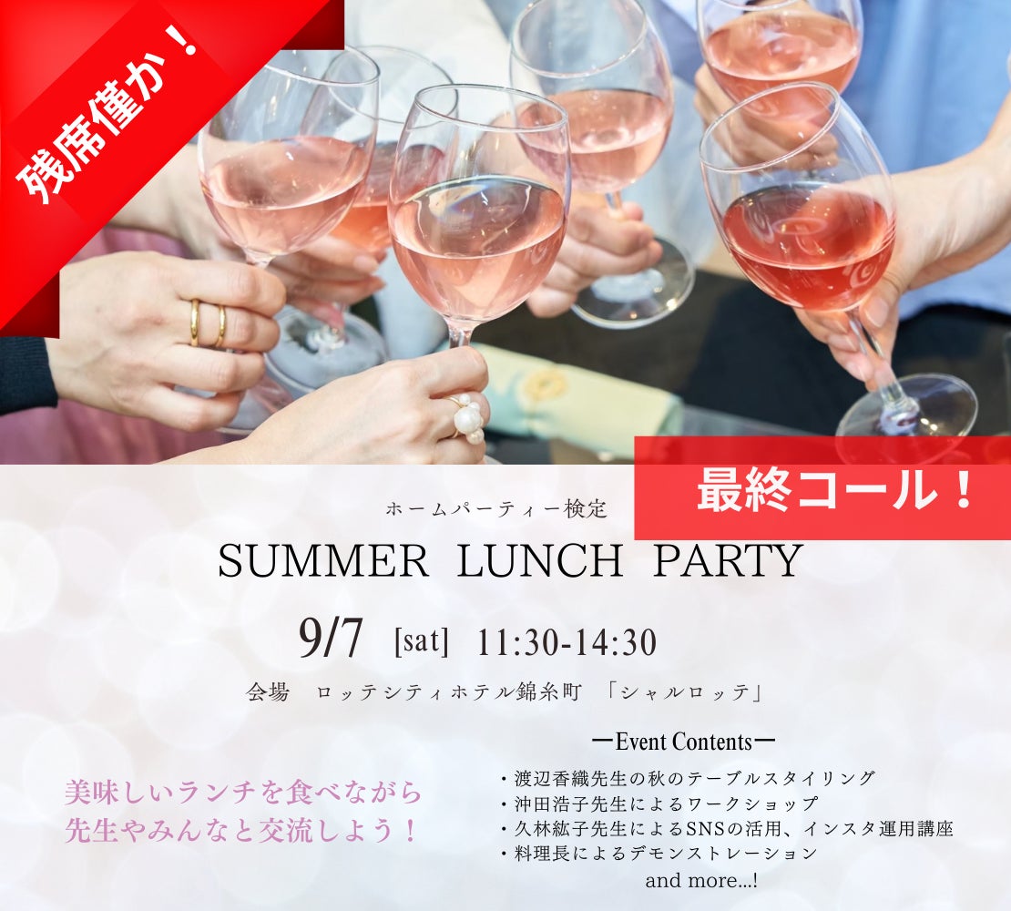 ホームパーティー検定「SUMMER LUNCH PARTY 2024」残席僅か!今回限定の特典も決定!