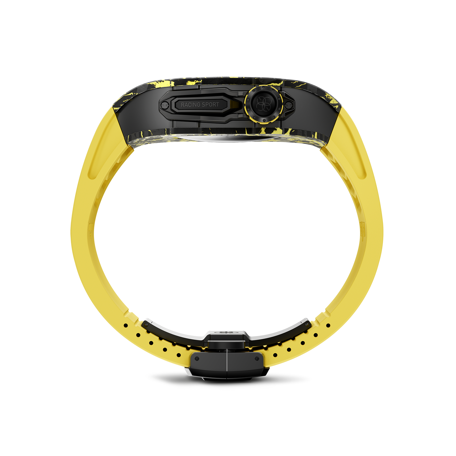 当社の設計チームは、これまでで最も複雑なプロダクトの 1 つを製作しました。 地球上で最も丈夫で軽量な素材から作られた新作レーシング スポーツ コレクションは、Apple Watch 7 と 8 (45 mm) の両方にフィットするように作られています。