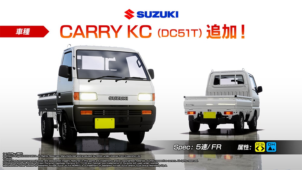 SUZUKIから「CARRY KC(DC51T)」、NISSANから「NISSAN GT-R Premium edition T-spec(R35)」が追加されました。
