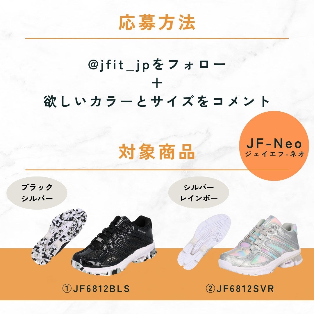 JFIT公式インスタグラムアカウント(@jfit_jp)のフォロワー様限定企画で、ハイインパクト(エアロビクス、ステップ)にも対応し、安定性・衝撃吸収性に特化したモデル【JF-Neo】(ジェイエフ-ネオ)のフィットネスシューズを抽選で合計2名様にプレゼントいたします。