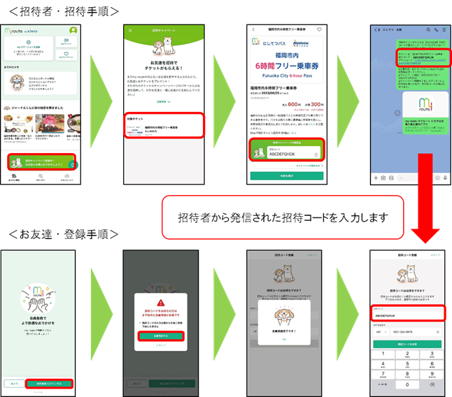 期間内に、「my route」をお友達に招待していただいた方と招待されたお友達