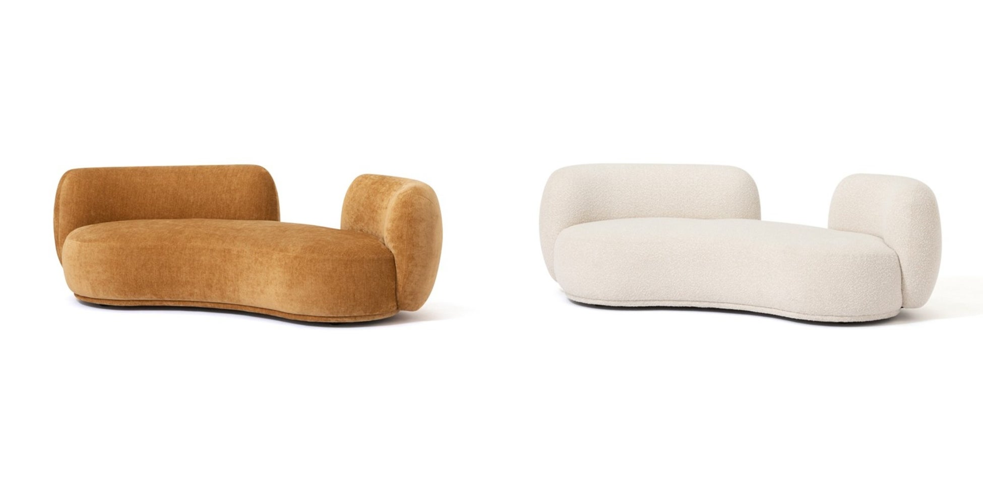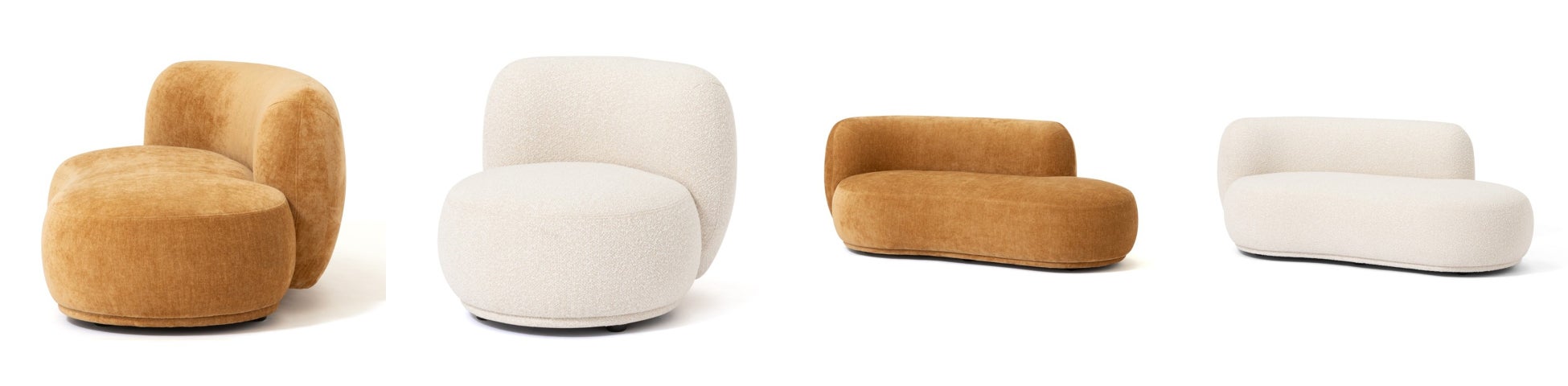 ⼈気のブークレ素材と、トレンドカラーであるマスタードイエローの光沢⽣地を起⽤した、ぽてっとした丸みが特徴のソファです。