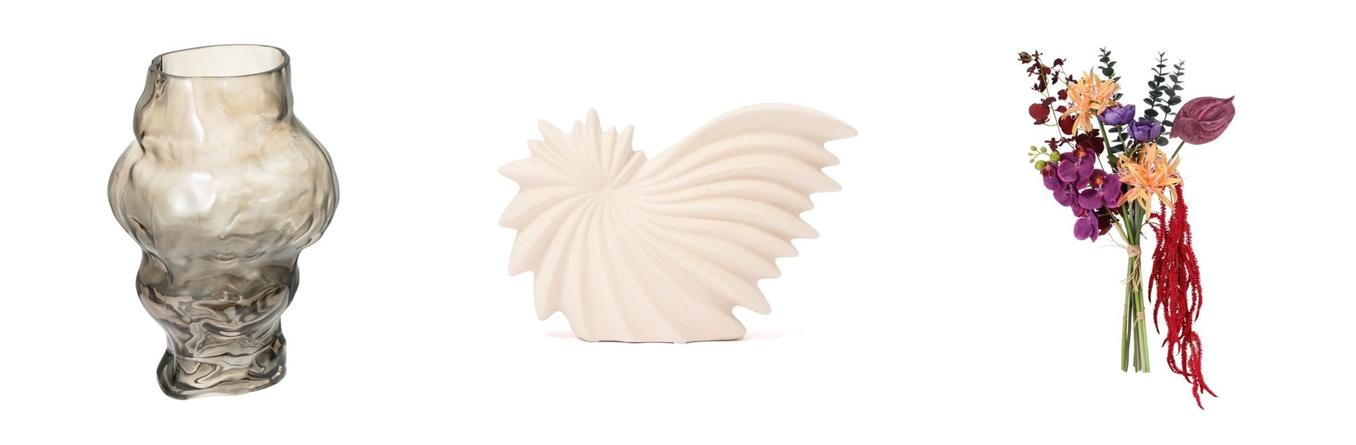 シェルの形を模したセラミック製のフラワーベースです。お花を飾らずに単体でオブジェとしても楽しむことができます。お花を飾る場合は1、2本程度さりげなく生けるのがおすすめです。