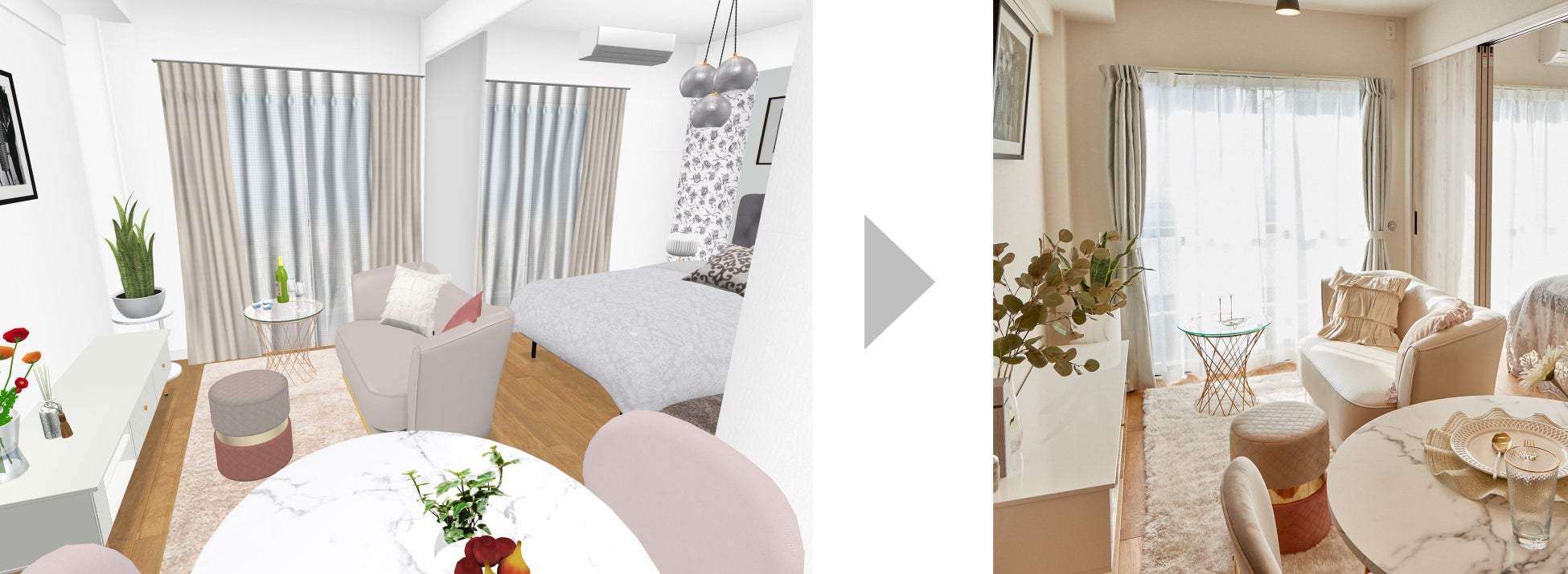 3Dシミュレーターを活用した「1LDKコーディネート」例