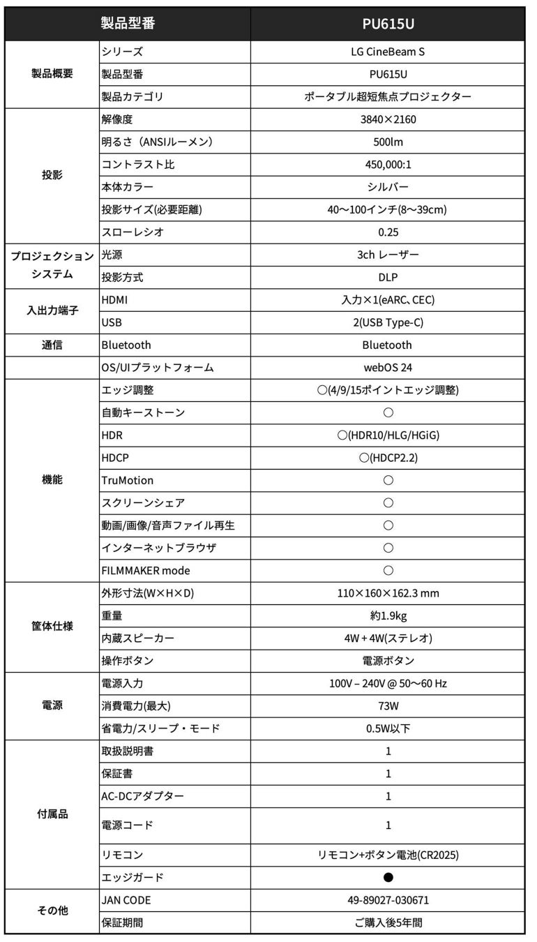 製品ページ:https://www.lg.com/jp/projectors/pu615u/