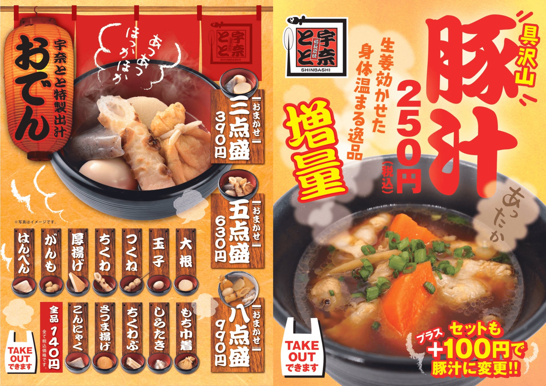 宇奈ととの季節限定商品で毎年人気を誇る「おでん」と「豚汁」が、今年も登場!