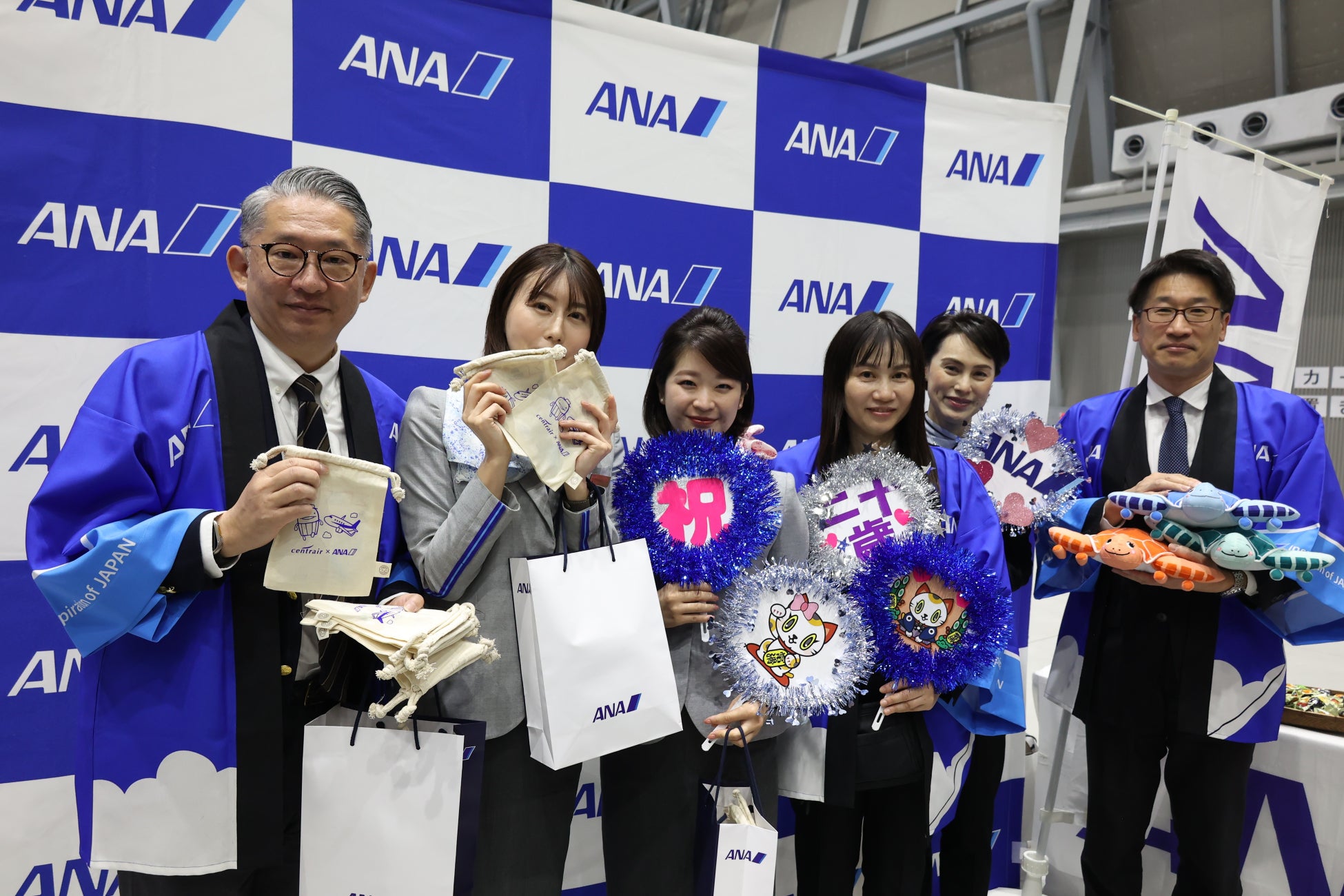 参加したエアライン各社は記念撮影やノベルティの配布などを行い、参加者と交流しました。