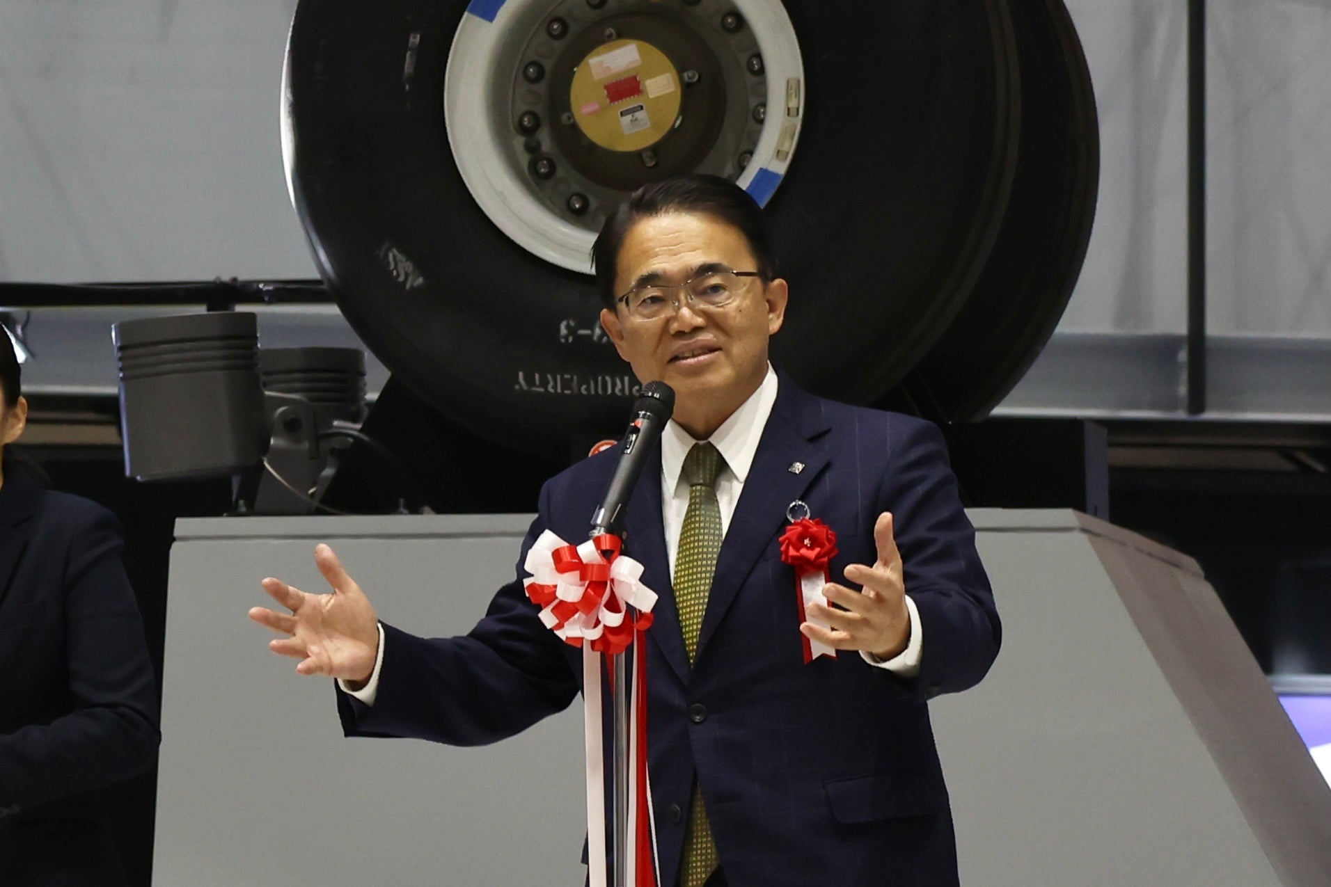 大村知事は「今みなさんの目の前にあるボーイング787初号機(ZA001)のように、みなさんに世界へ羽ばたいていただきたい。混沌とした時代ではあるものの、それはみなさんにとってチャンスでもある。みなさんのパワーと行動力で、より素晴らしい世界を作っていただきたい。」と、参加者の将来に期待を込めました。