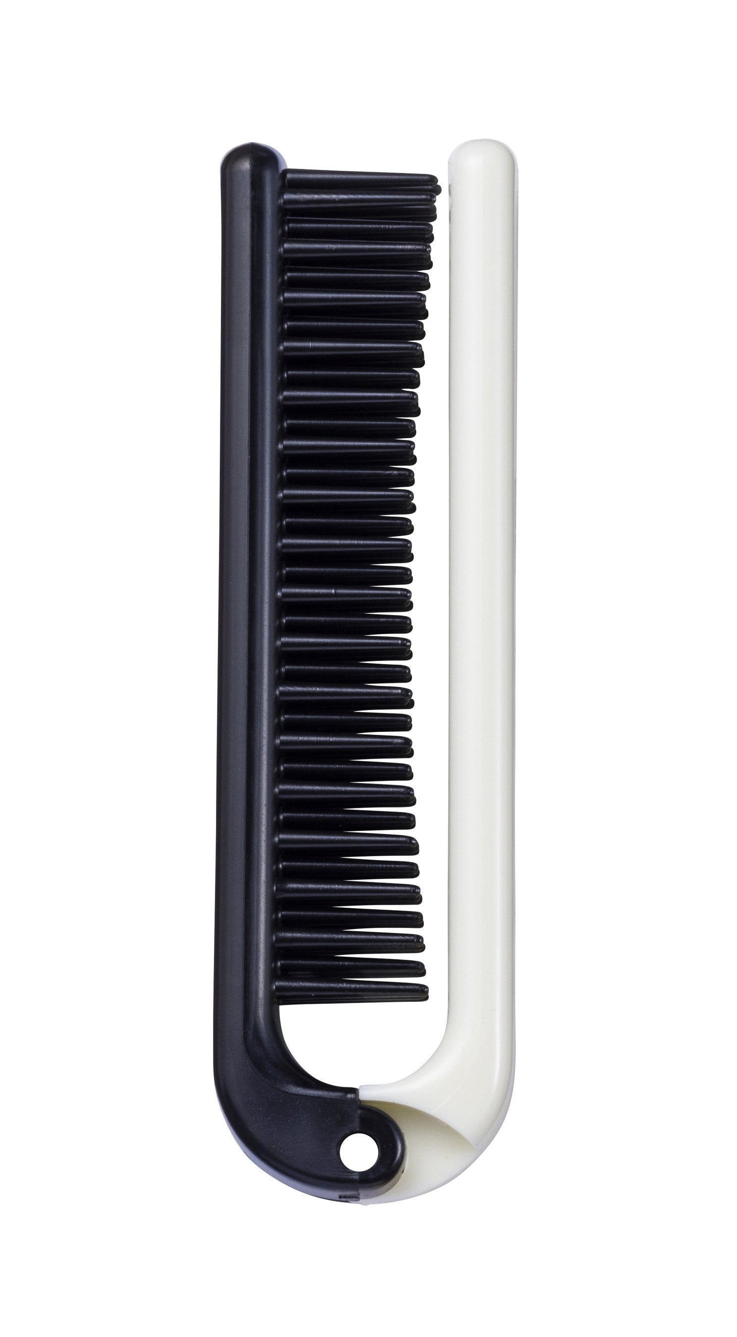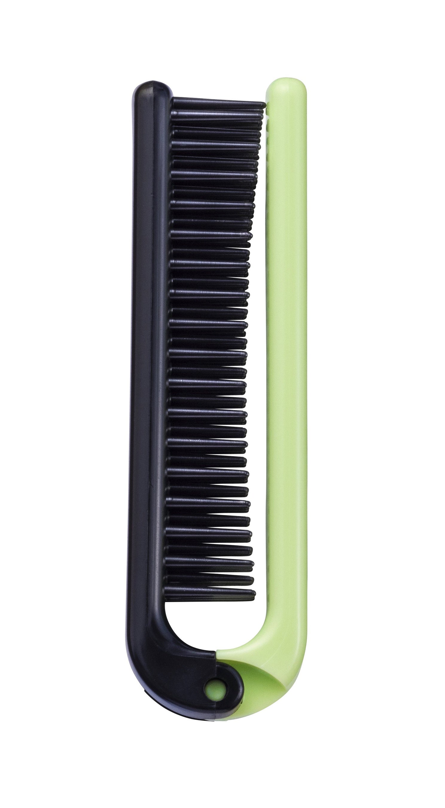 カーブしたブラシ部が頭の形にフィットする使い心地のよいブラシです。コンパクトに折りたためるので外出先の持ち歩きにも便利。
