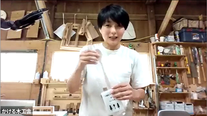 「かける木工舎」からは、家具職人の東村英司さん、當房こず枝さんが登場し、職人さんが直接教える、小国杉を使ったスプーン作りのワークショップを実施しました。