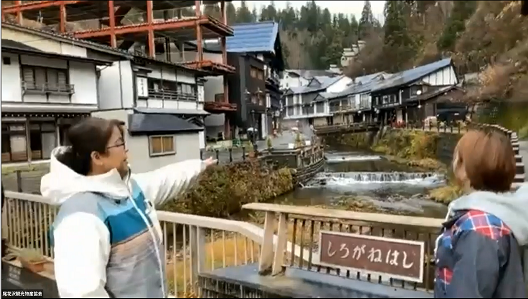 イベントでは銀山温泉ツアーを開催。銀山温泉の入り口から順に、銀山温泉の名前の由来にもなった銀坑洞まで、歴史ある温泉街の魅力をたっぷり紹介しました。また、ツアー後には銀山温泉にまつわるクイズも出題されました。
