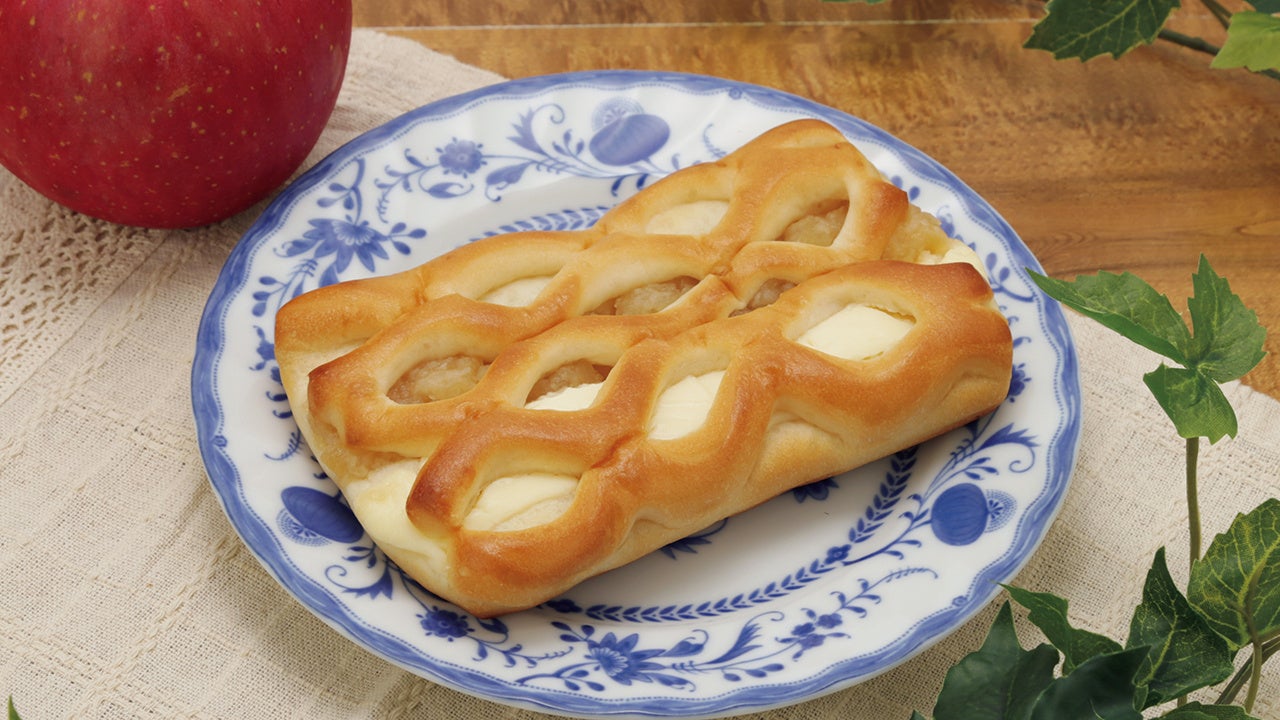 甘酸っぱいチーズクリームと果肉の食感が楽しめるりんごジャムを絞り、ふっくらと焼き上げました。チーズクリームのほど良い酸味と、フルーティなりんごの味わいがよく合うパンです。