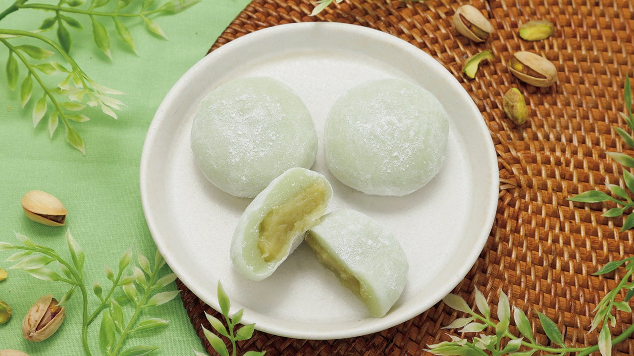 ピスタチオの香ばしくてまろやかなナッツの味が新しい、洋風大福です。なめらかなくちどけの餡と、ナッツの優しい味わいがもちもちの大福生地に良く合います。3個入りです。