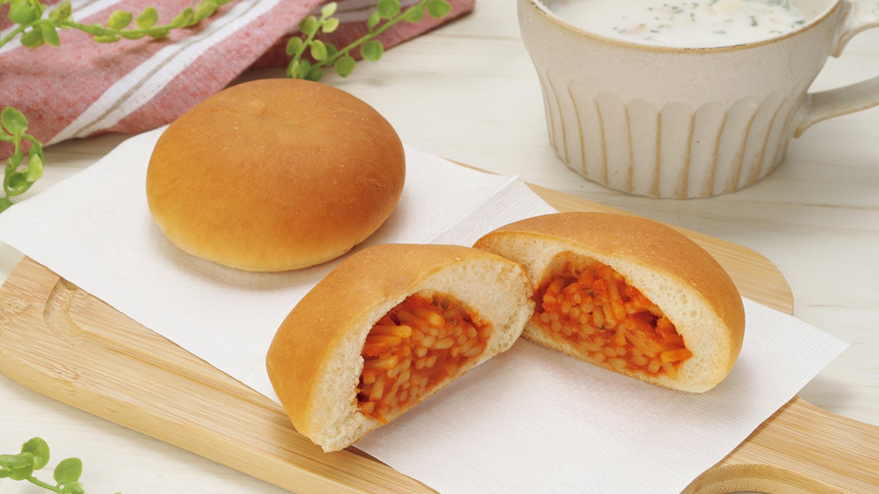 ふんわりとした食べやすい大きさのミニパンに、トマトの甘みを感じるケチャップを絡ませた昔懐かしいナポリタンを包みました。小腹がすいたときに1個ずつ食べたり、シェアもできる便利な2個入りです。