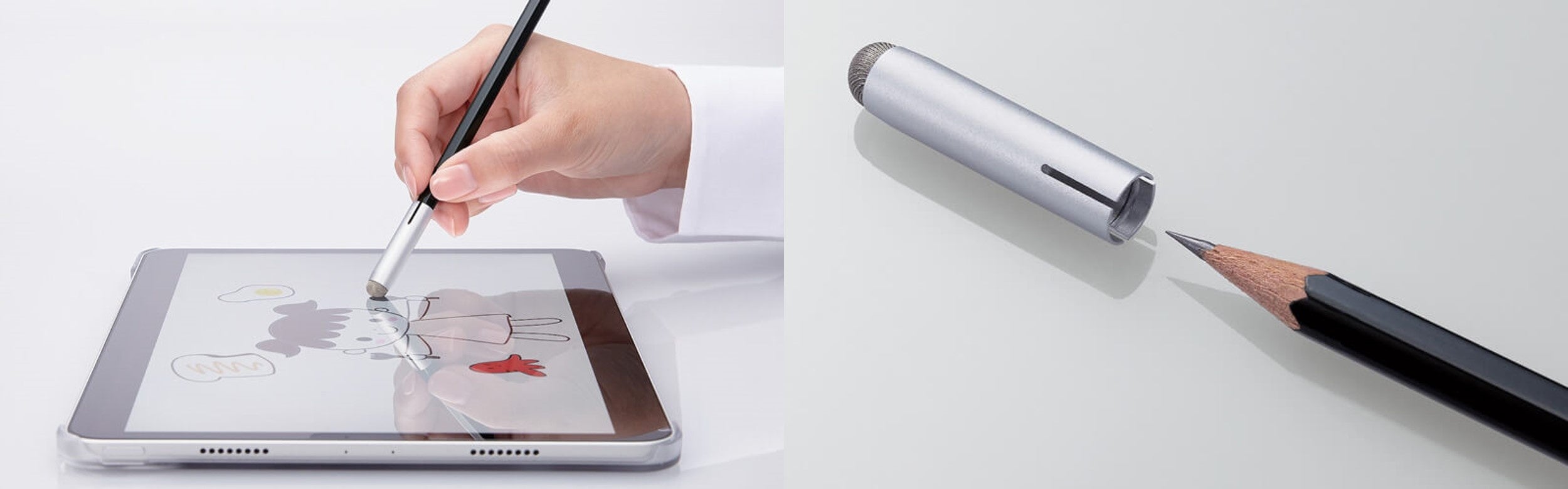 鉛筆キャップ型タッチペン“P-TPSENCPSV”は、通常の鉛筆に鉛筆キャップを装着することで、鉛筆のような感覚で操作できるタッチペンです。いつもの鉛筆をタッチペンとして使用できるので、筆箱の中でもかさばりません。力加減の難しいお子様でも扱いやすい丈夫なペン先を採用しています。便利な2個入りです。