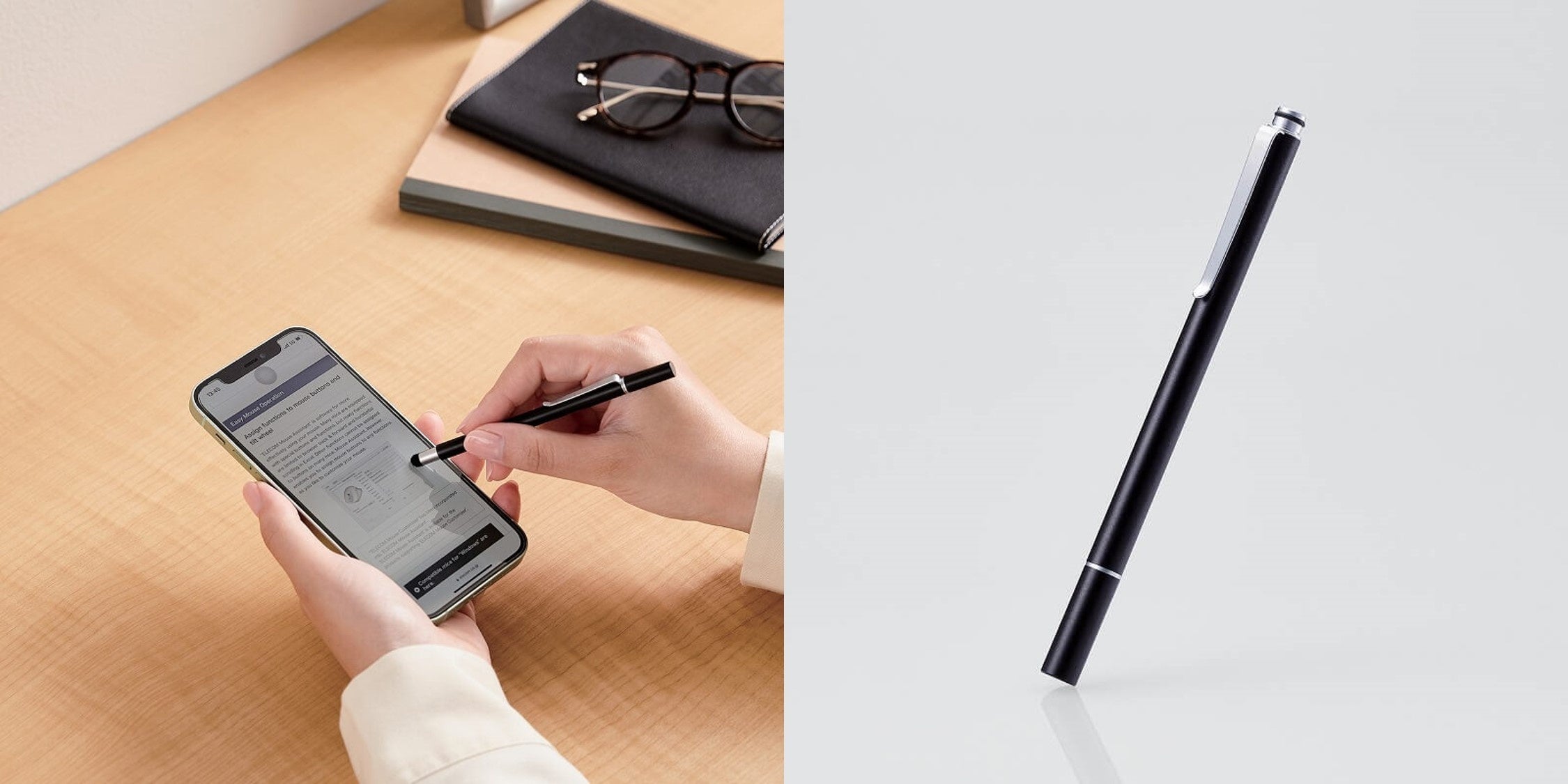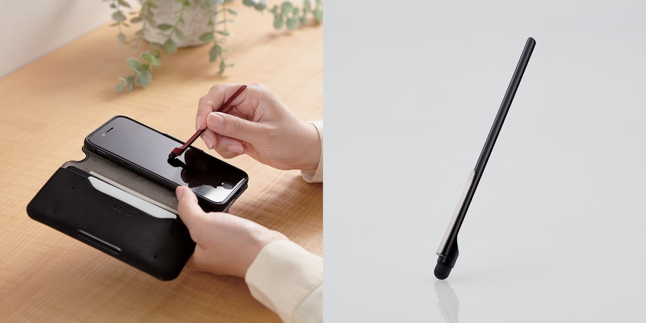 - 手帳型ケースの内側に挟めるスリムタイプのタッチペン