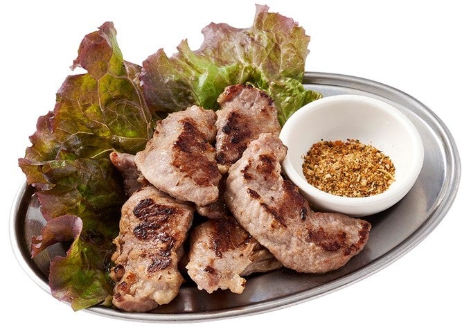 塩麴を揉みこんだ豚ハラミを焼いたボリューミーな1品!特製スパイスを付けて召し上がってください!