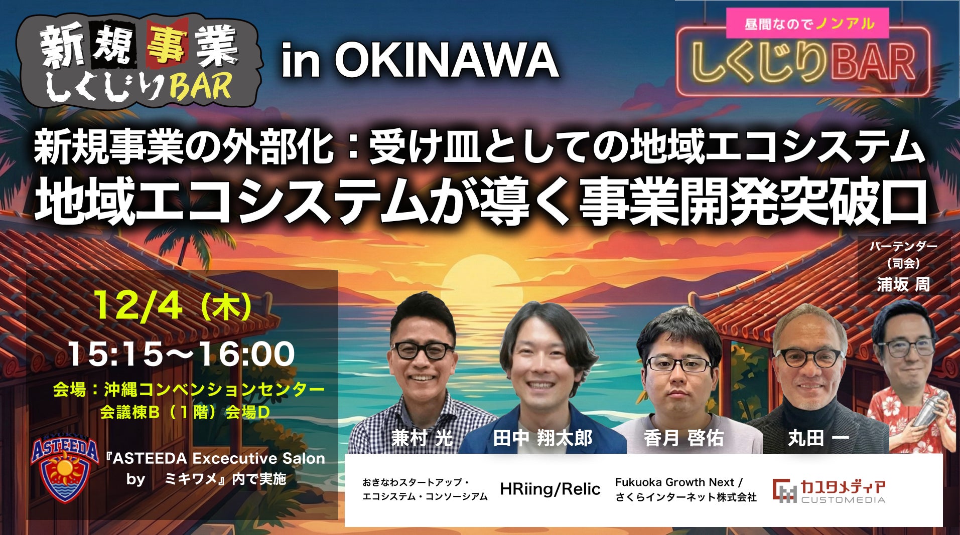 12/4(木)沖縄にて開催『地域エコシステム』が新規事業開発を成功に導く 新規事業 しくじりBAR in OKINAWA(アスティーダ沖縄)