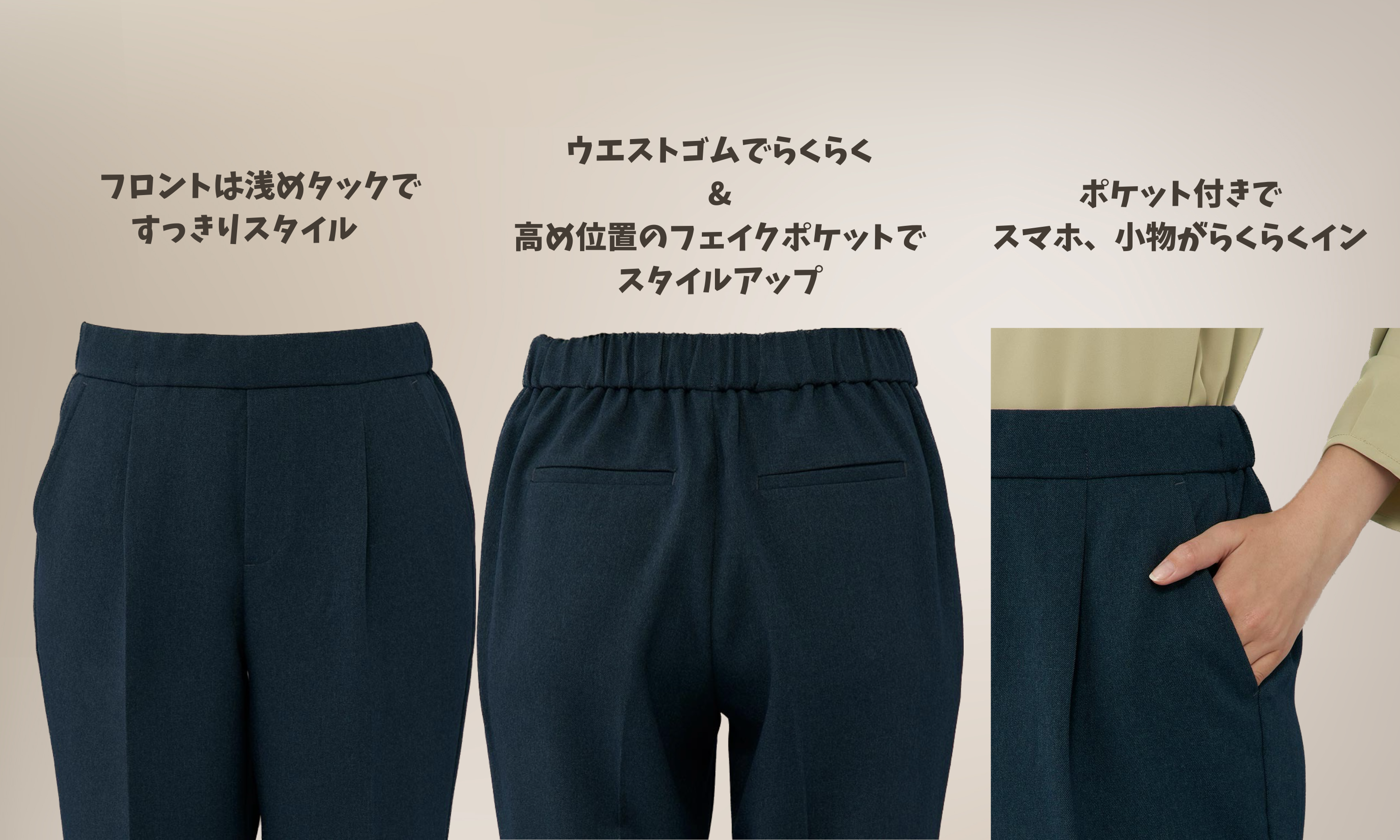 スタイリングの組みやすさと、はき心地の良さ、4,290円というプチプライスが魅力の美単パンツシリーズからは新たにウーリッシュデザインが登場。ウーリーな肌触りが季節感を演出します。もちろんシワになりにくウォッシャブル仕様でお手入れ簡単な機能性も充実したパンツです。