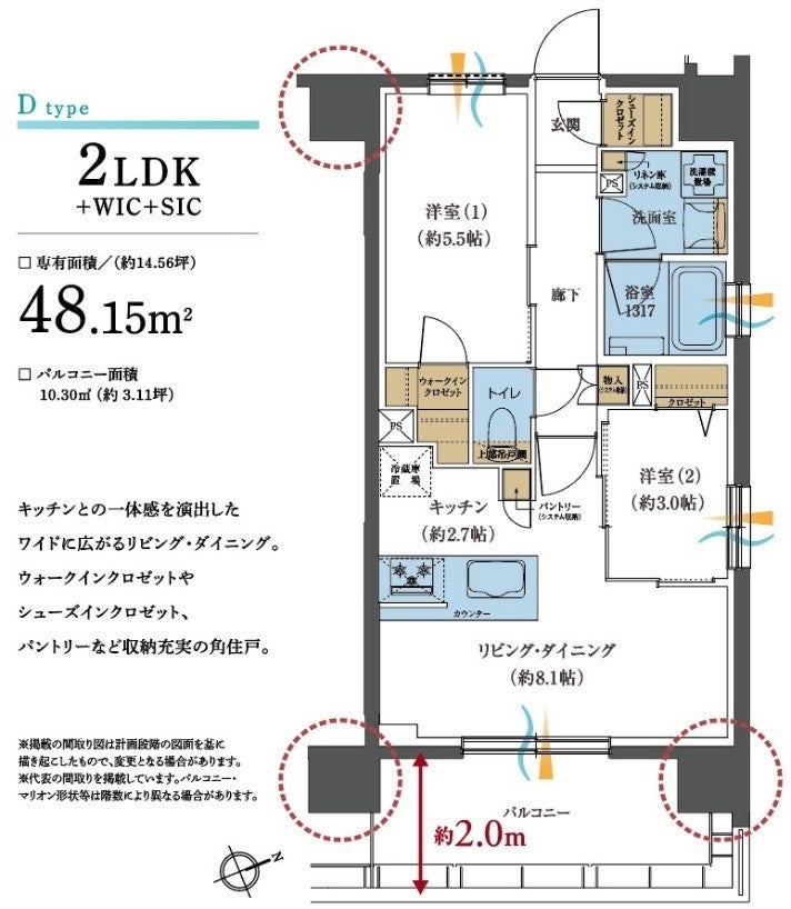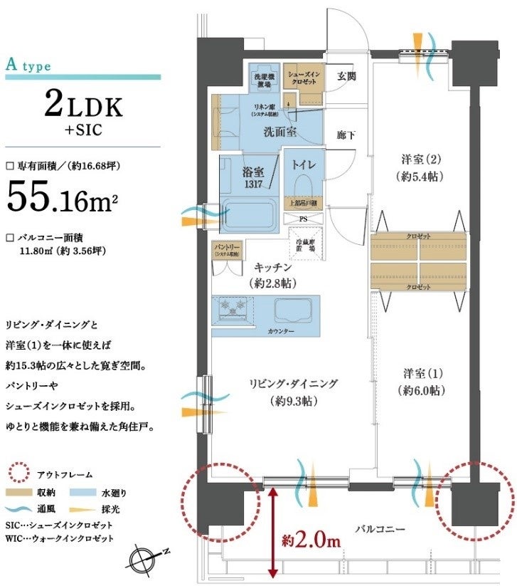 住居専有面積 : 43.47m²~55.16m²