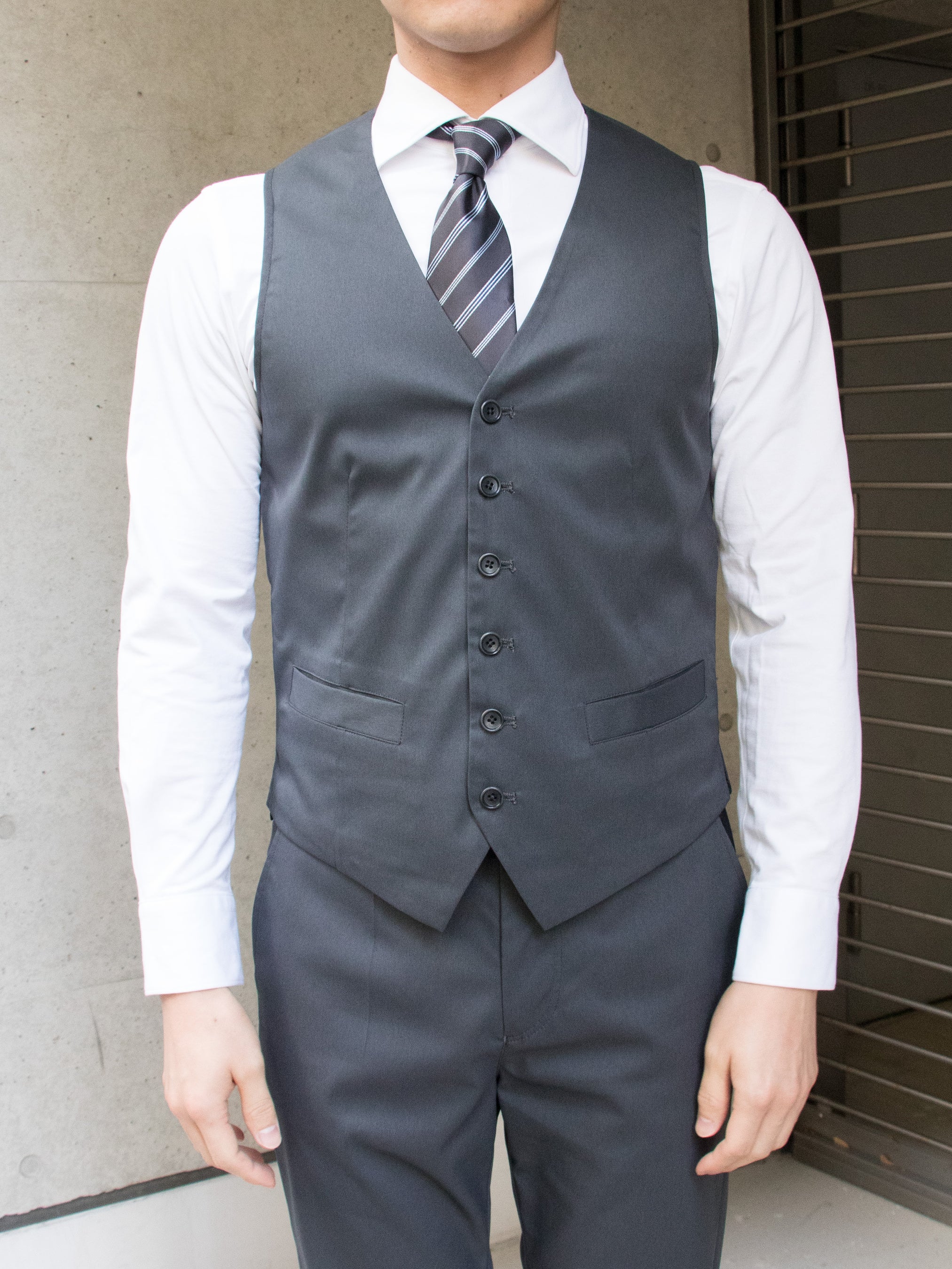 ジャケットを脱いでもスタイリッシュ感を損なわないベストは、ビジネスシーンだけでなく結婚式での着用も最適です。WWS公式ストア限定で販売中です。