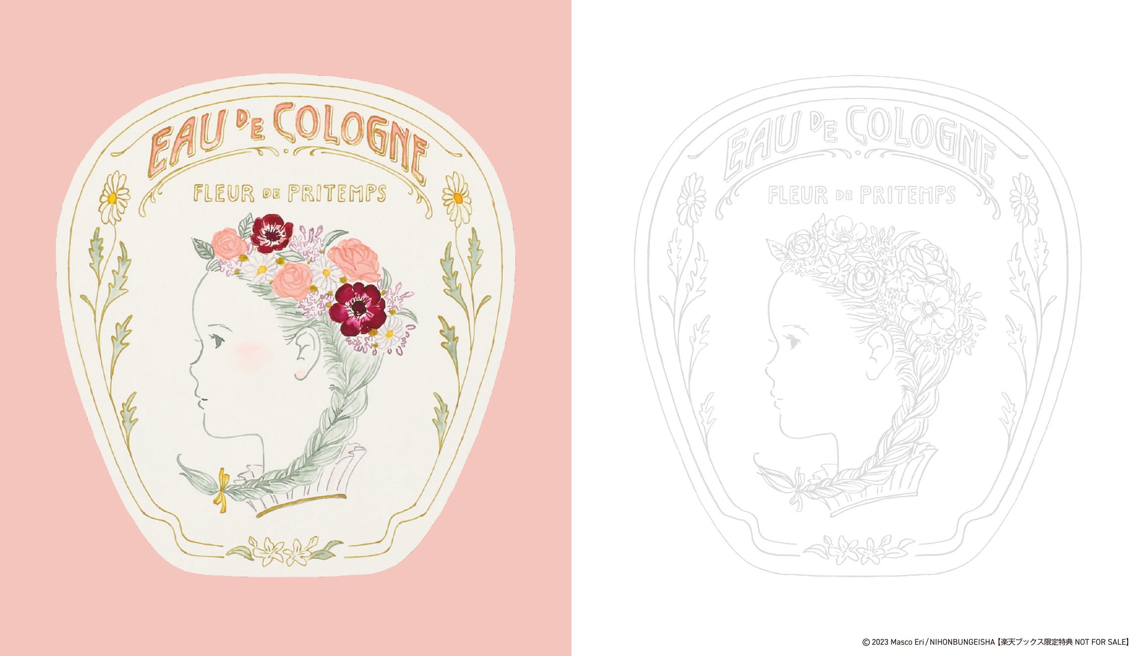 楽天ブックスでは数量限定の特典をご用意しました。ますこえりさん描き下ろしの本書カバーイラスト「花冠の少女」を2つ折りカードに。片面は原画の華やかな着彩が美しい飾って楽しめ、もう片面はなぞれるイラストを配しました。用紙は本文にも使用するHS画王です。2つ折り時のサイズ:縦168mm×横146mm