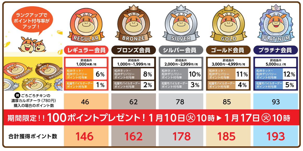 ※松屋モバイルオーダーは「100ポイントプレゼント」対象外です。