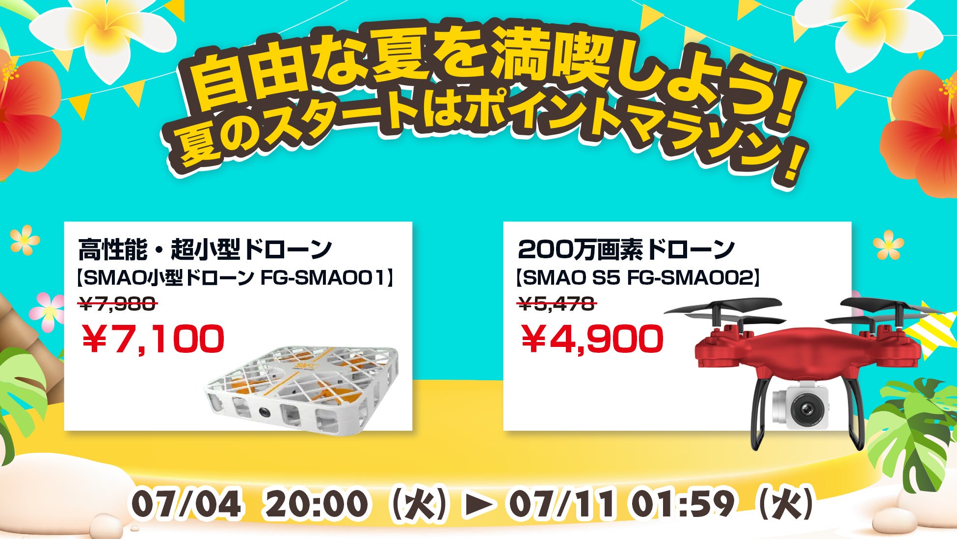 楽天「Show !t」私有地で上空からの撮影と運転操作を楽しめるドローンの10%オフセールを開始。7月4日(火)20時開始ポイント10倍!楽天お買い物マラソンに参加。