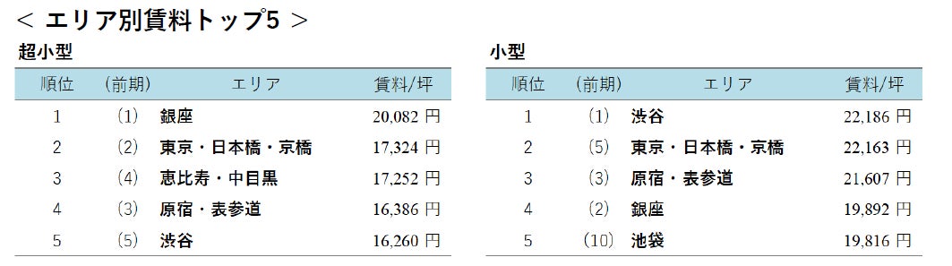 東京21エリアの小規模オフィス募集賃料(以下、賃料)は超小型・小型ともに小幅ながら上昇。
