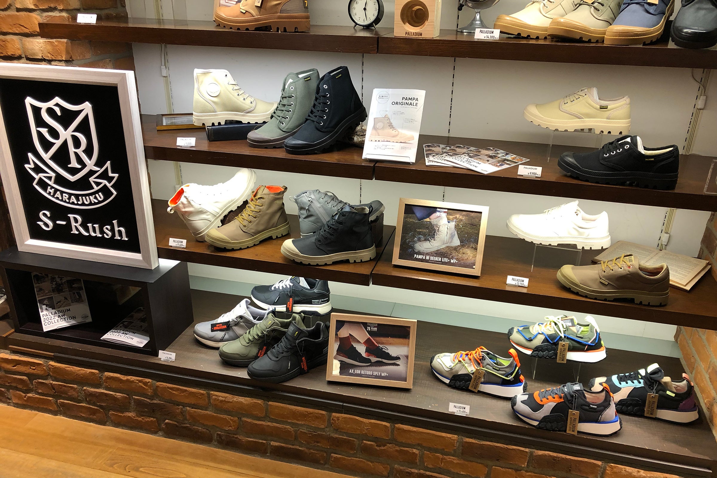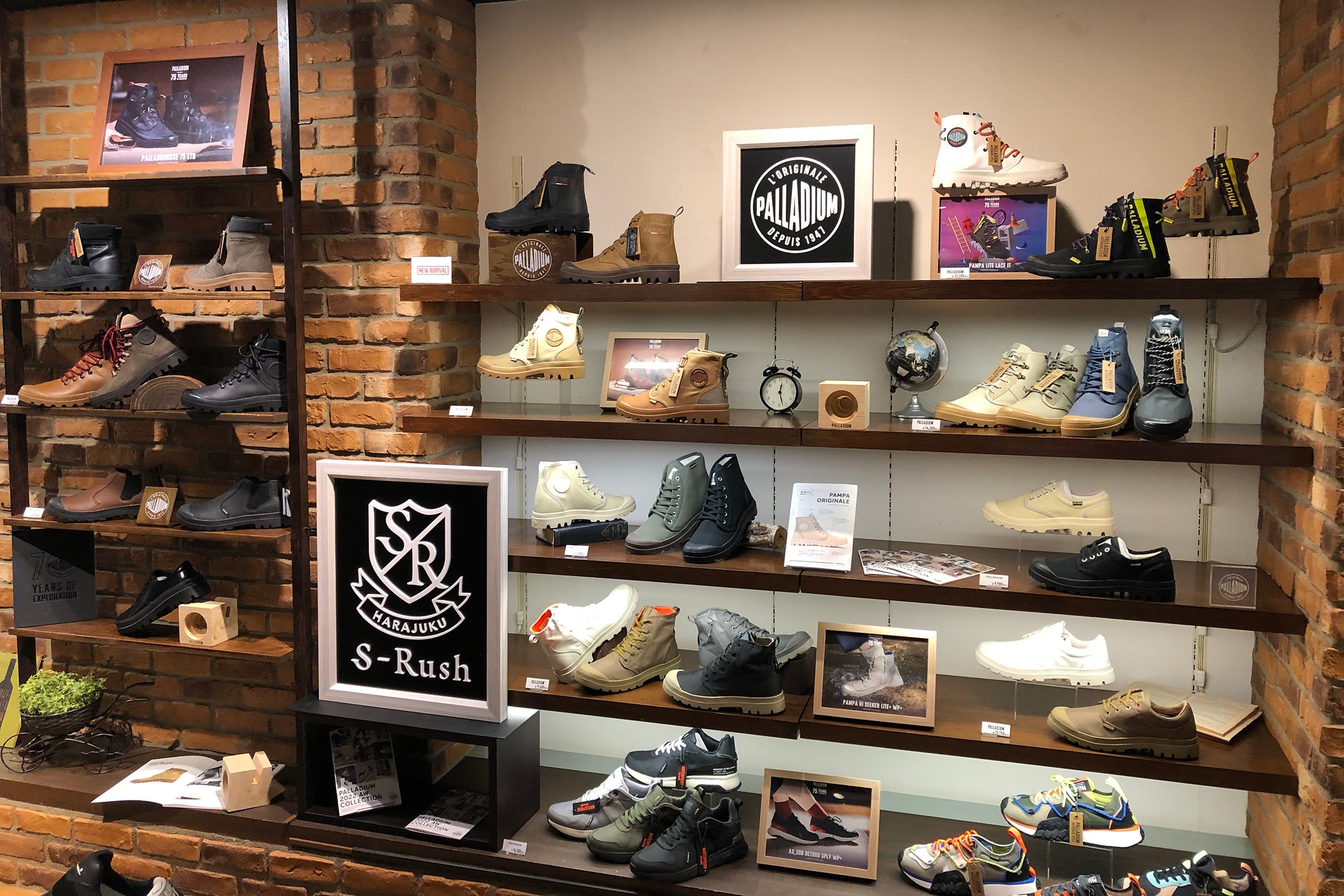 S-Rushは、エスエスケイが運営するhummel(ヒュンメル)とPALLADIUM(パラディウム)を中心にしたスニーカーセレクトショップで、原宿、横浜の路面店に加え、大阪にショップインショップとして2店舗あり、今回初めて兵庫県神戸市にオープン。
