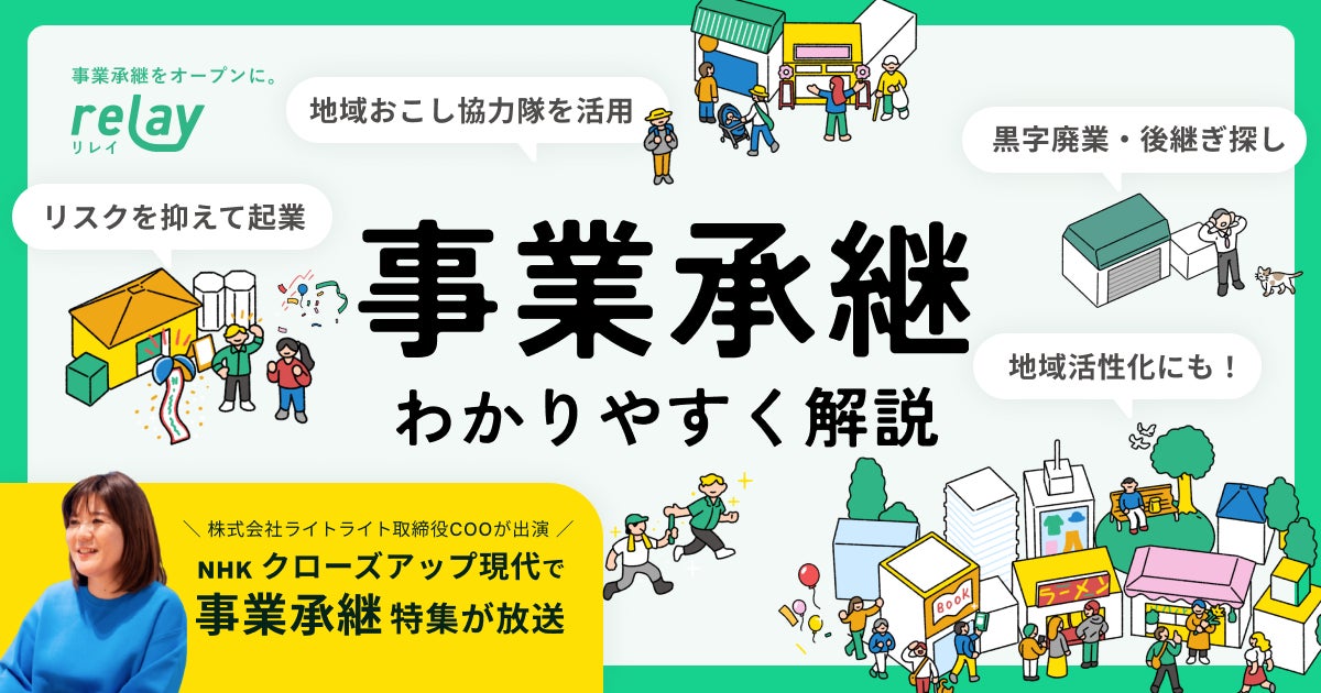 運営:株式会社ライトライト(事業承継マッチングプラットフォーム「relay(リレイ)」を運営)