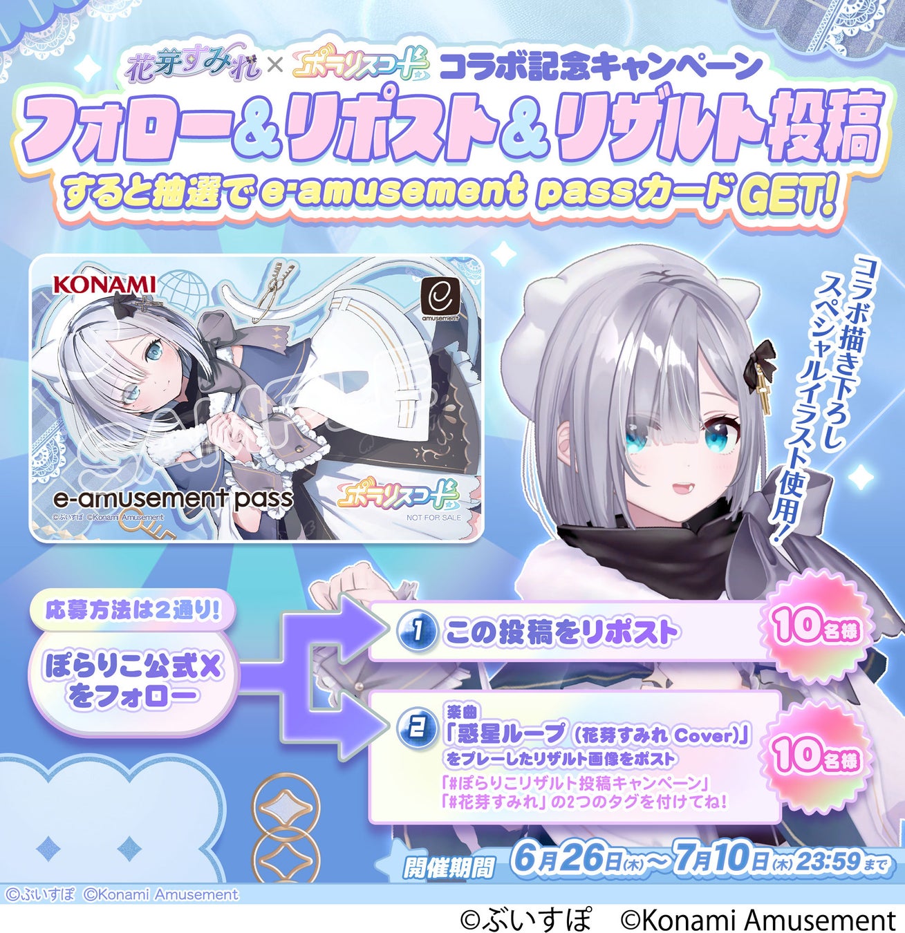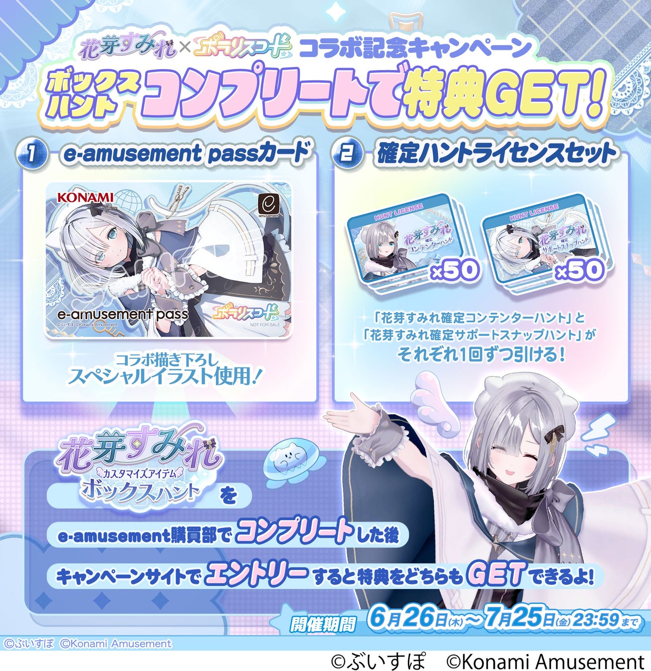 さらに、『花芽すみれ』とのコラボを記念した描きおろしの「e-amusement passカード」を獲得できるキャンペーンも各ゲームで開催します。
