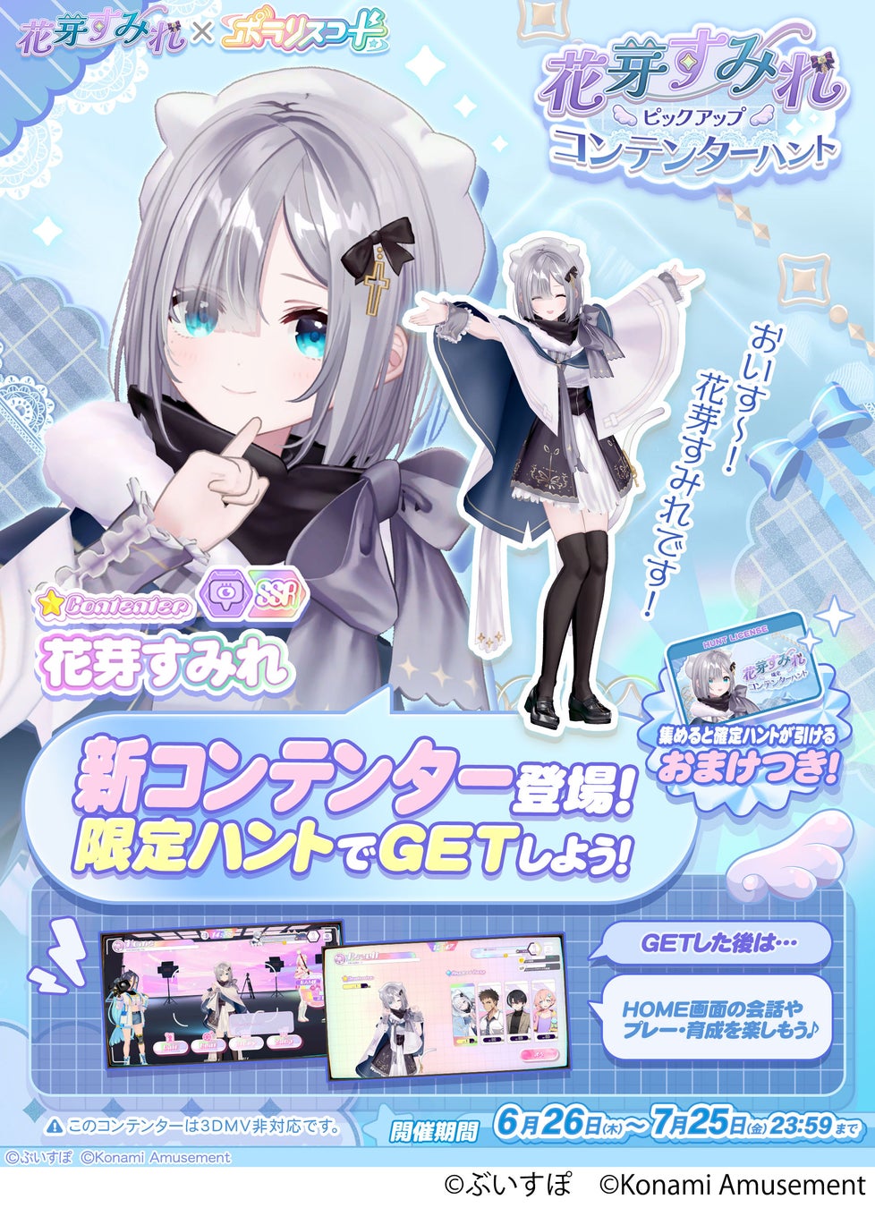 イベント開始日から『SOUND VOLTEX EXCEED GEAR』と『ポラリスコード』のゲーム内に『花芽すみれ』が登場します。