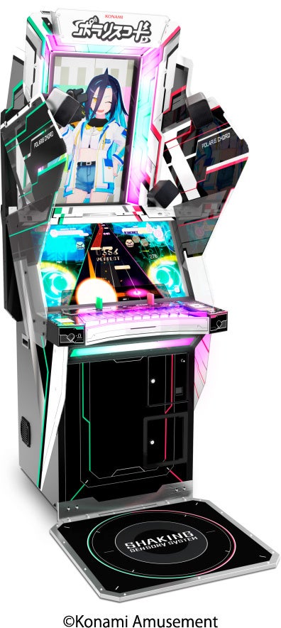 『ポラリスコード』は、タップ操作とスライド操作ができる鍵盤型「ボタン」デバイスと、左右に動く2つの「フェーダー」デバイスが搭載されており、音楽に合わせてシンプルな操作性ながらアミューズメント機器ならではのダイナミックな体験が、初心者の方も直観的に楽しめる音楽ゲームです。ゲームには、SNSで話題となっている流行曲や人気の歌い手による歌唱曲などを中心とした充実のラインナップが収録されています。