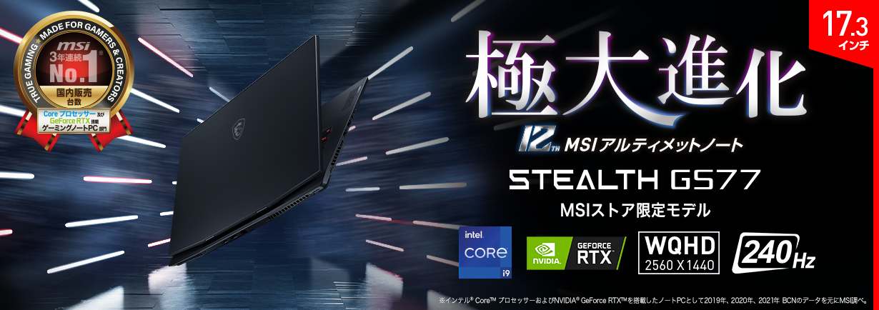 薄型フラッグシップデザインを採用した17.3インチゲーミングノートPC最新モデル! ハイエンドゲーミングノートPC「Stealth GS77 12U」発売