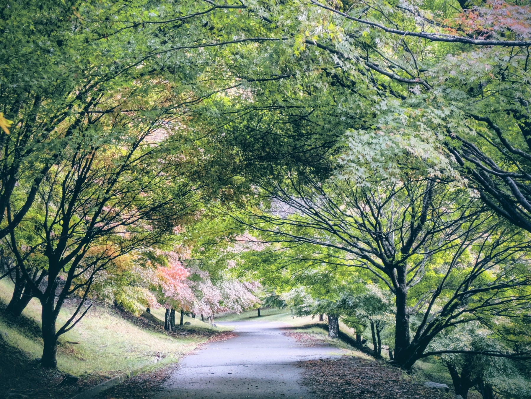 紅葉の一歩手前であるもみじのトンネルが、柔らかな光に包まれて非常に美しく描写されています。何気ない日常を捉えた一枚でありながら、ご家族への感謝の気持ちが伝わる、情緒豊かな作品として高く評価いたしました。