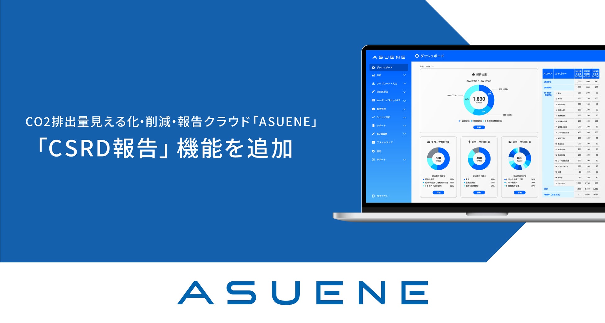 アスエネ、CO2排出量見える化・削減・報告クラウドサービス「ASUENE」に「CSRD報告」機能を追加