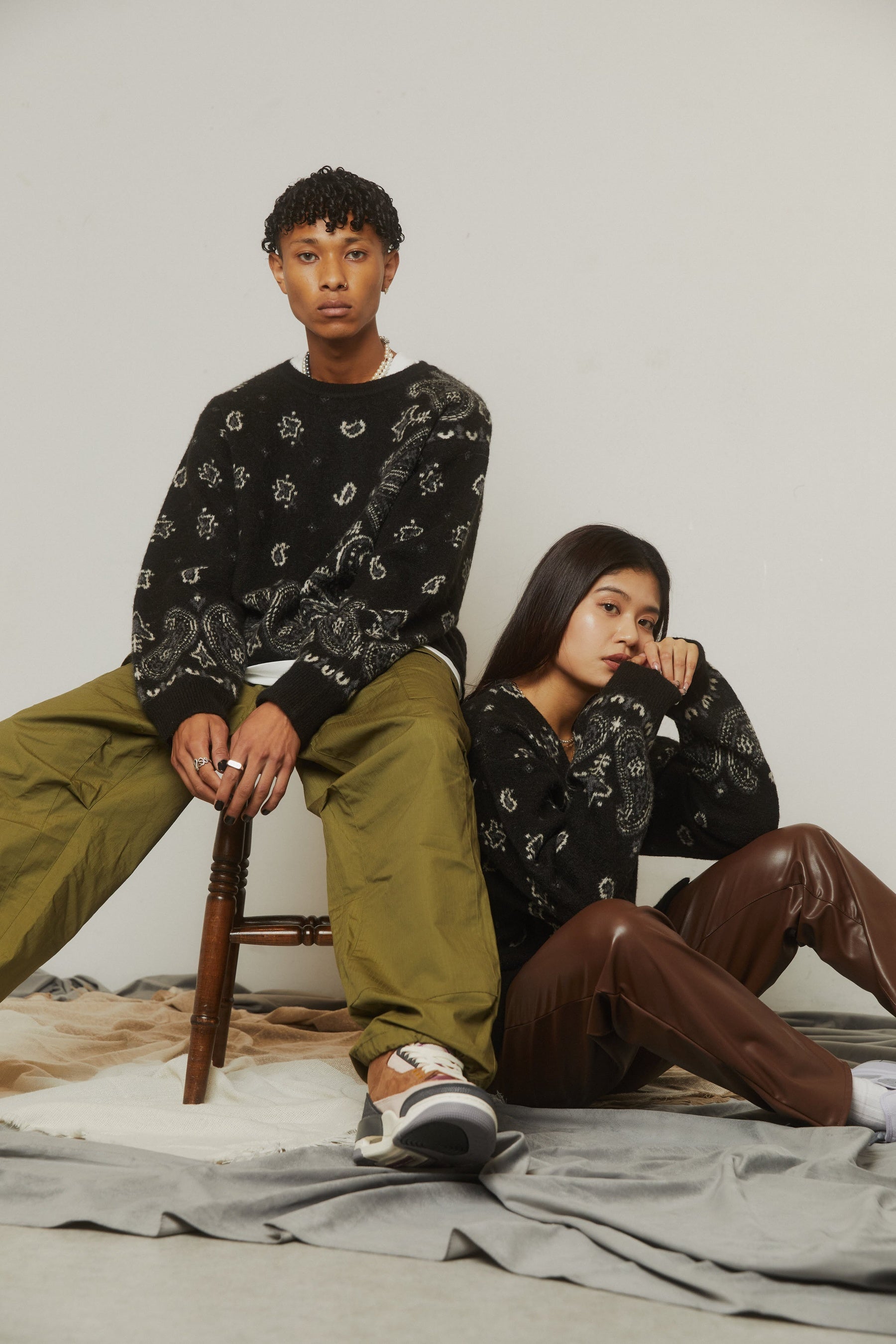 - ITEM: TOKYO 23 x ELEPHANT BRAND BANDANA PATTERN JACQUARD KNIT CREW