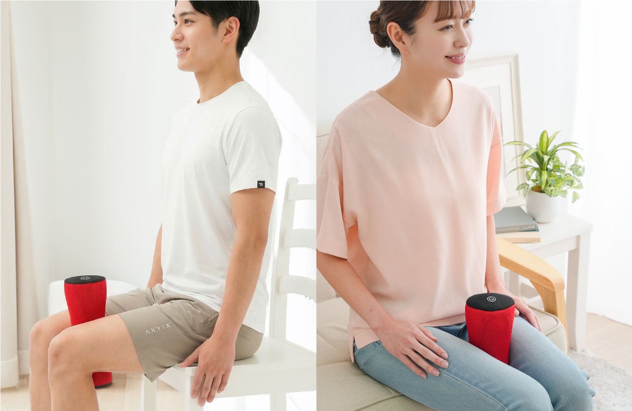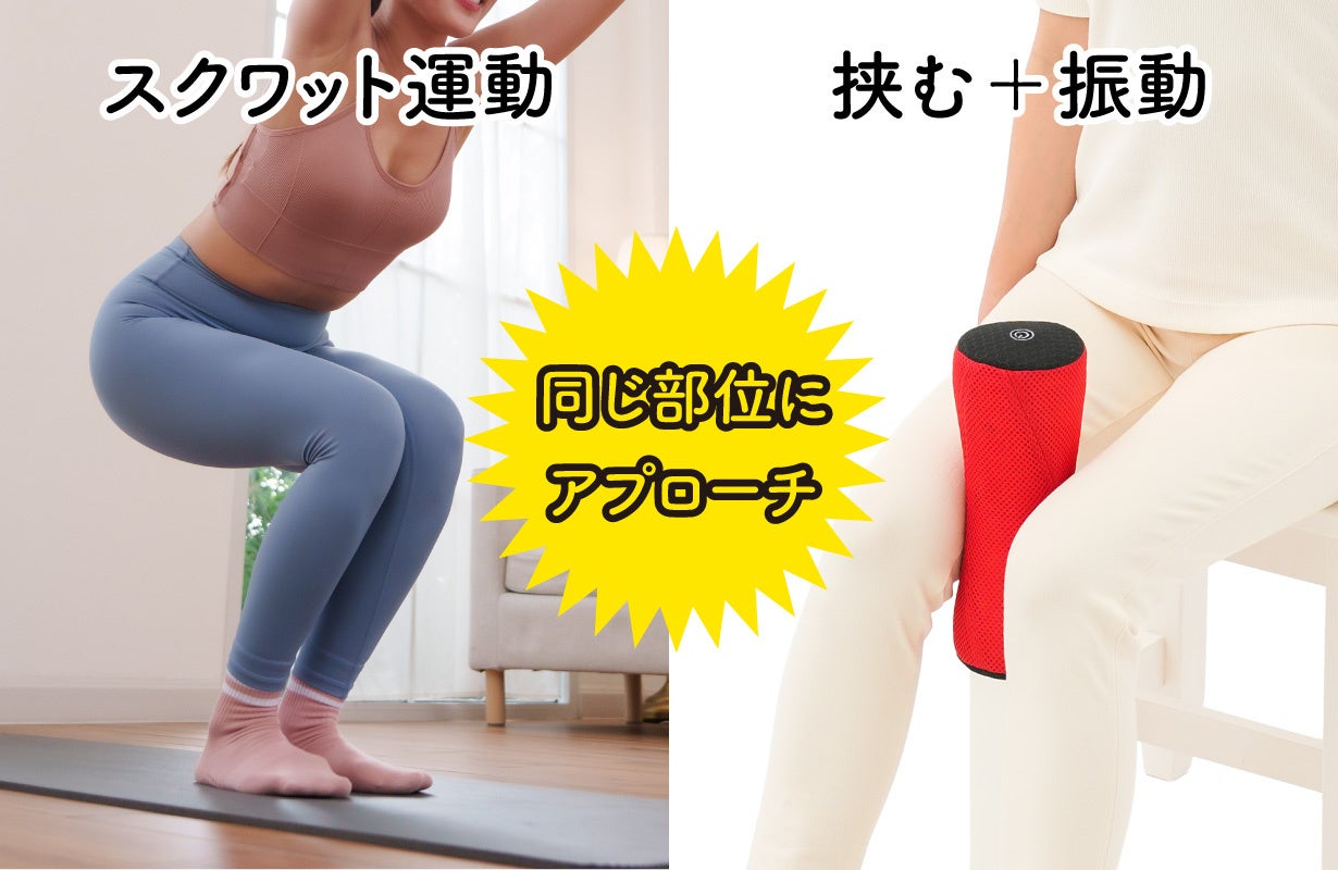 【マクアケ新プロジェクト】挟んで振動!スクワットで鍛える部位を、座ったまま刺激!筋活動量最大約3.8倍!