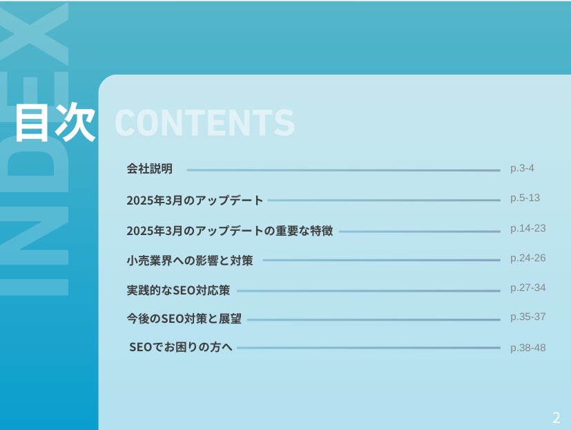 株式会社ベクトル(本社:東京都港区、代表取締役会長兼社長:西江 肇司、東証プライム:6058)の子会社であるOwned株式会社(東京都品川区、代表取締役社長、石井翔、以下「当社」)は、小売業界向けに「Googleアップデートによる分析レポート」の2025年3月版(全48ページ)を無料公開いたしました。