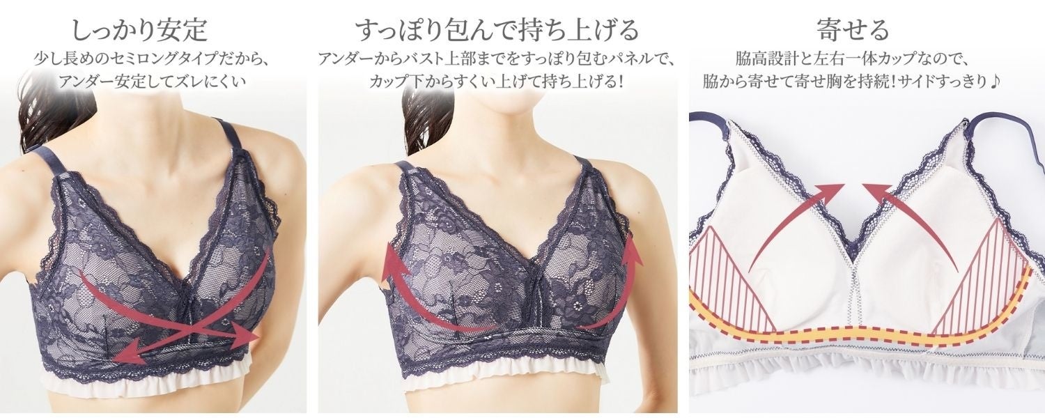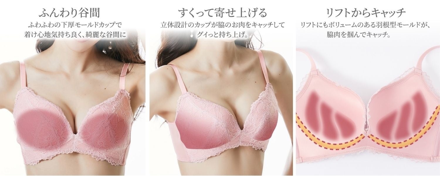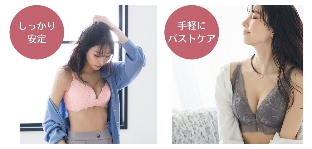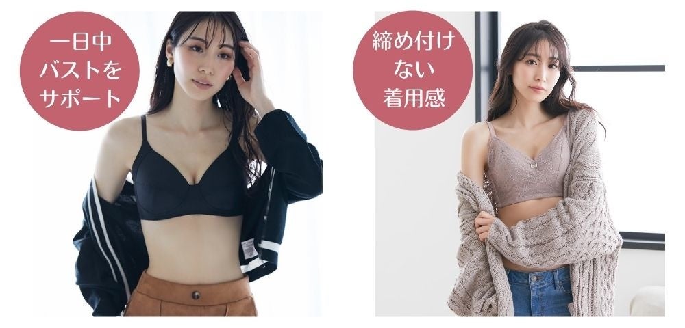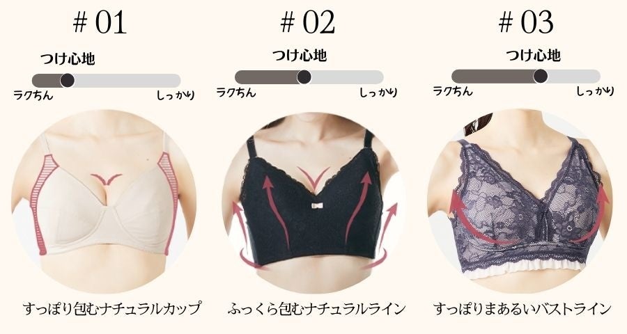 “ ワイヤーが無いから痛くなくて、楽な着心地 ” だけじゃない、着用感や機能性にこだわった新しいノンワイヤーブラジャーです。好みの着け心地や、理想のバストに合わせて6つの商品からお選びください。