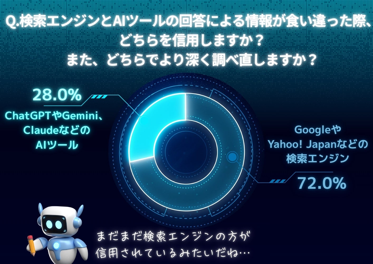 【72.0%が「検索エンジン」を信用】情報の相違は「AIツール」に不安感