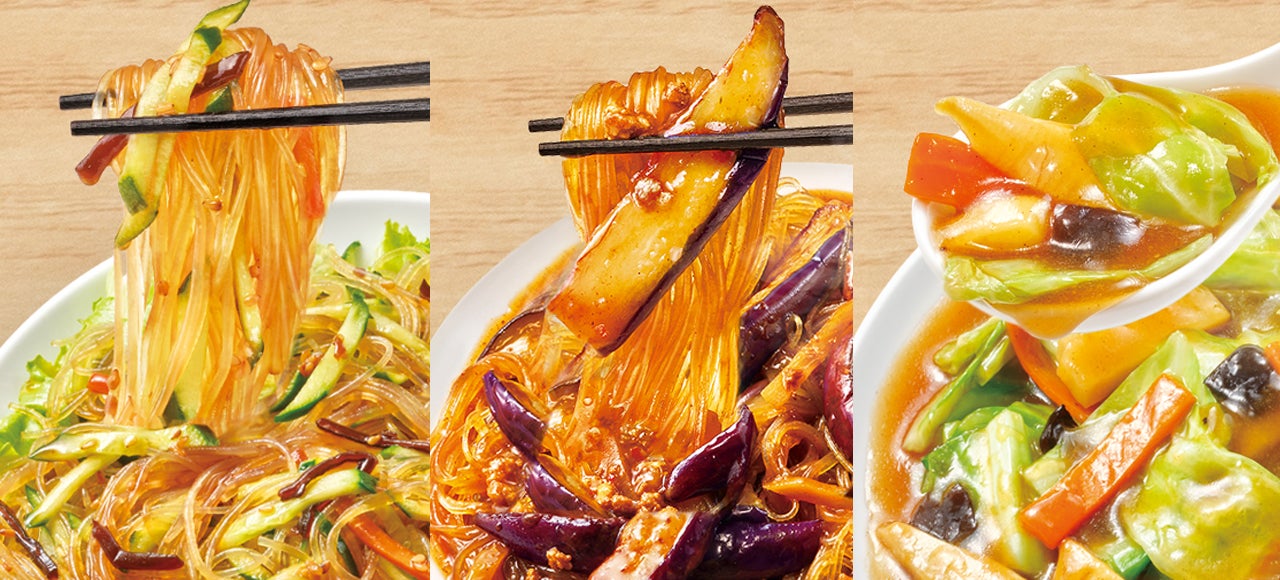 がんばらなくても大丈夫!野菜1つでおいしい中華料理が完成『野菜1つでかんたん 中華風春雨サラダ』『同 春雨入り麻婆茄子』リニューアル発売『同 五目あんかけ炒め』新発売