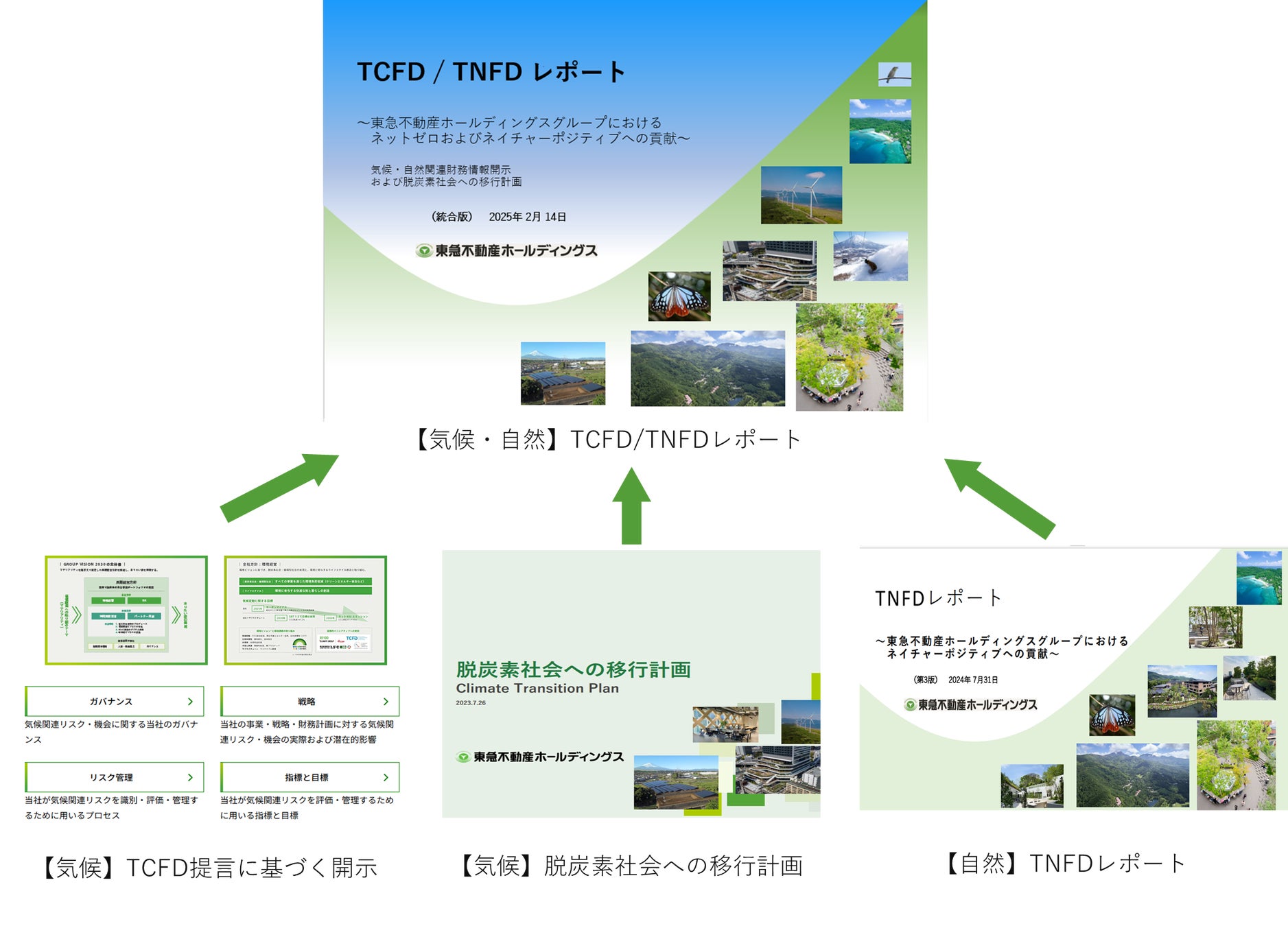 東急不動産ホールディングス株式会社(本社:東京都渋谷区、代表取締役社長:西川 弘典、以下「当社」)は、TCFD*1およびTNFD*2に基づきこれまで開示した、「TCFD提言に基づく開示」、「脱炭素社会への移行計画」、「TNFDレポート(第3版)」(以下、「TNFDレポート」)の3つの気候・自然関連財務情報開示を統合した「TCFD/TNFDレポート」(以下、「本レポート」)を策定いたしましたので、お知らせします。